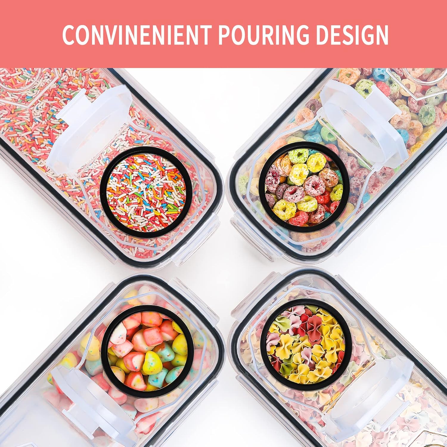 • Innovative Design: These cereal storage containers have a unique design. There are holes in the lid, so you can pour out food easily without opening the whole lid. In order to enhance the sealing ability of these plastic food storage containers for pantry, we added a silicon seal around the opening of the flip lid