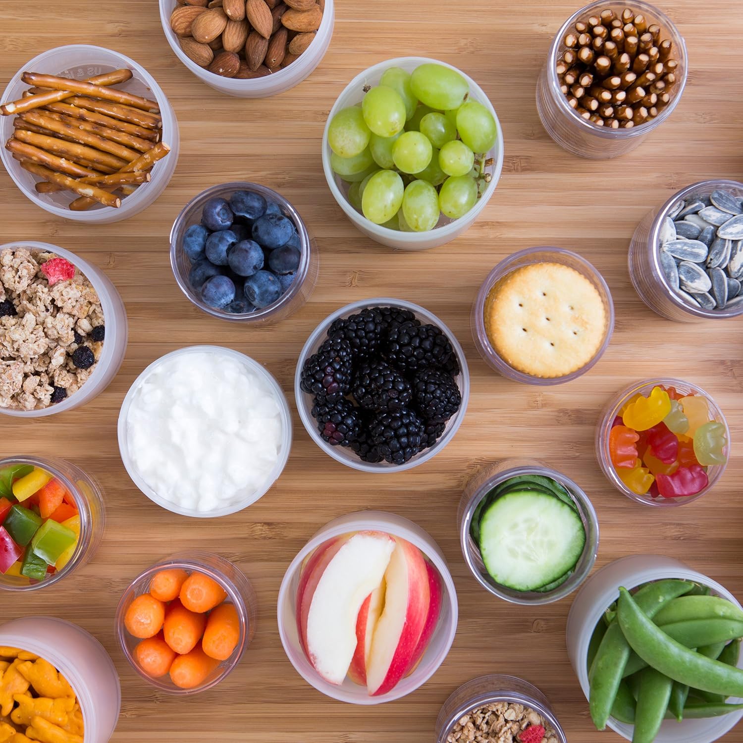 Whiskware Stackable Snack Containers for Kids and Toddlers, 3 Stackable Snack Cups for School and Travel, White and Mint
