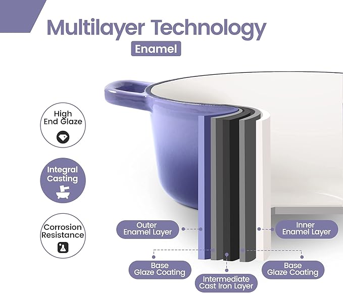 • Suitable for 6-7 people: The 5.5 quart enamel Dutch oven is the choice for cooking food and desserts. Its design makes your food look more delicious