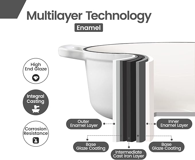 • Suitable for 6-7 people: The 5.5 quart enamel dutch oven is the choice for cooking food and desserts. Its design makes your food look more delicious