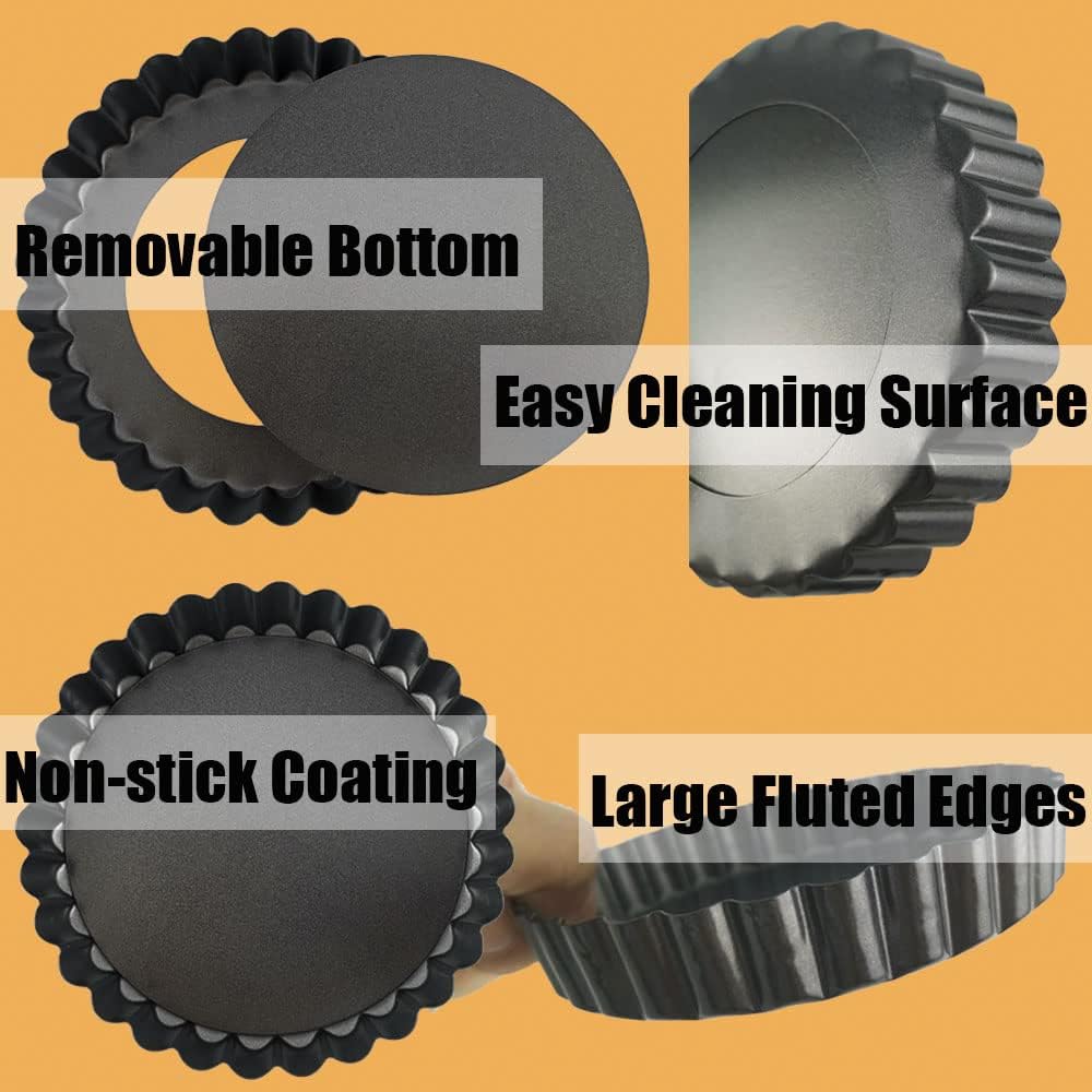 • 【Premium 5 Inch Tart Pans with Removable Bottom】Crafted from thickened 0.6mm carbon steel, DATANYA 5-inch tart pans with removable bottoms are built to last, offering superior durability compared to standard pans. The deep fluted edges add a touch of elegance, making them perfect for creating stunning individual tartlets, quiches, and mini desserts. Elevate your baking game with these professional-grade tart pans.