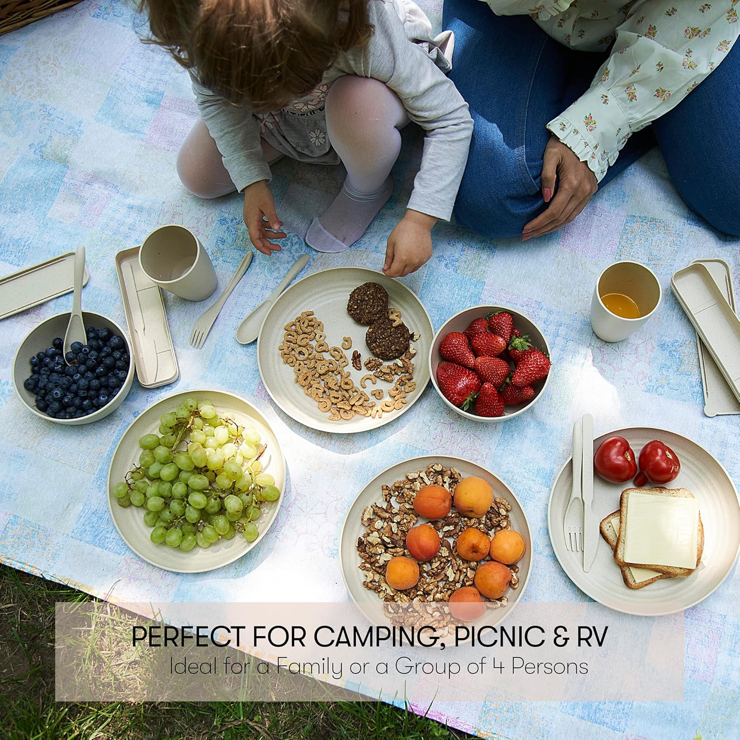 • Multipurpose Dinnerware - Our reusable dishes set for 8 are made for every occasion and will not only be great for home and kitchen use, but also convenient for an rv or camper, a picnic, BBQing, camping, work, school and much more. The unique design allows for easy compact storage as well. You can't go wrong with our wheatstraw dinnerware set.