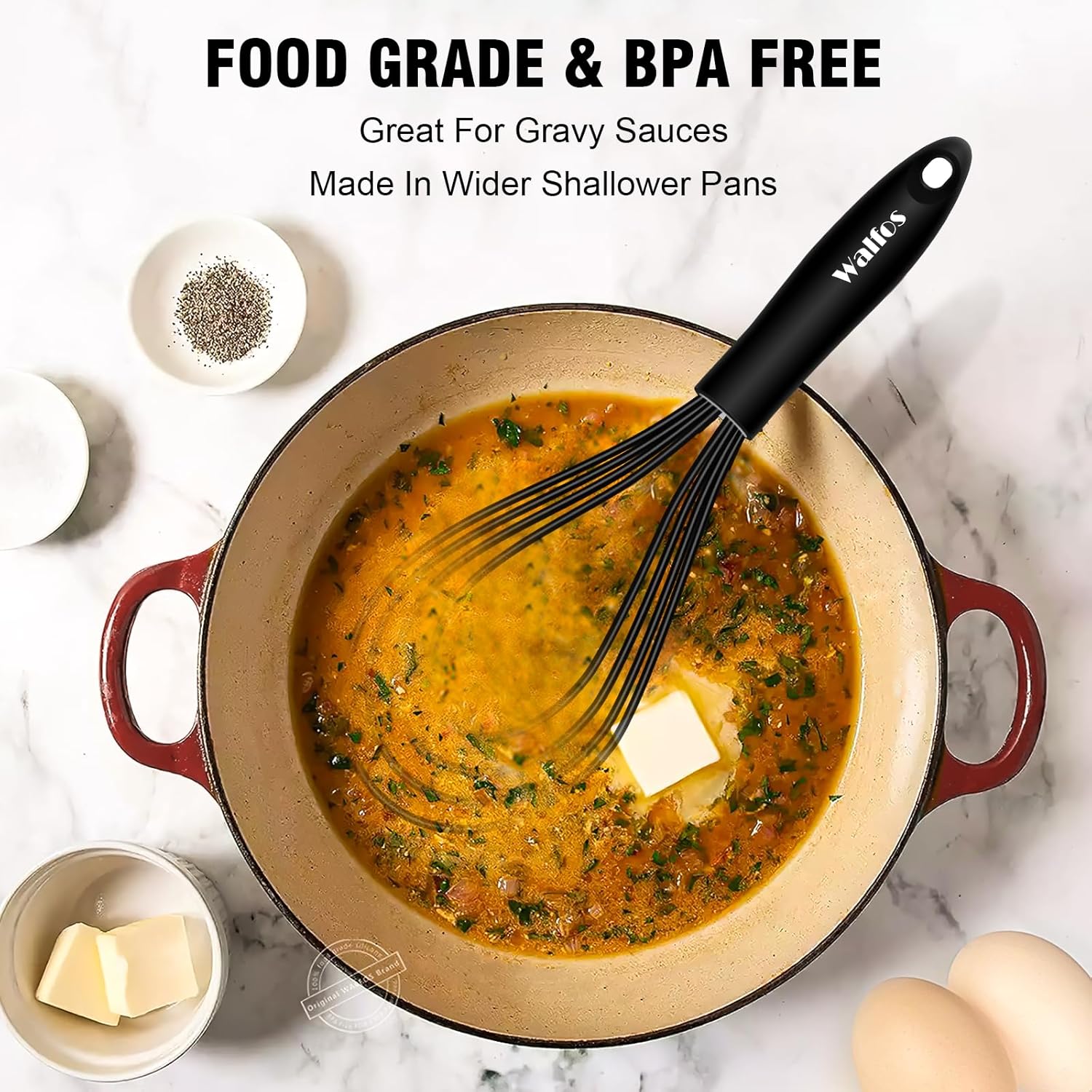 Walfos Silicone Flat Whisk,11inch Flat Whisk Non Scratch Coated Flat Whisks for Cooking.Great for Ceramic Coated pans and Wider shallower pots.Black
