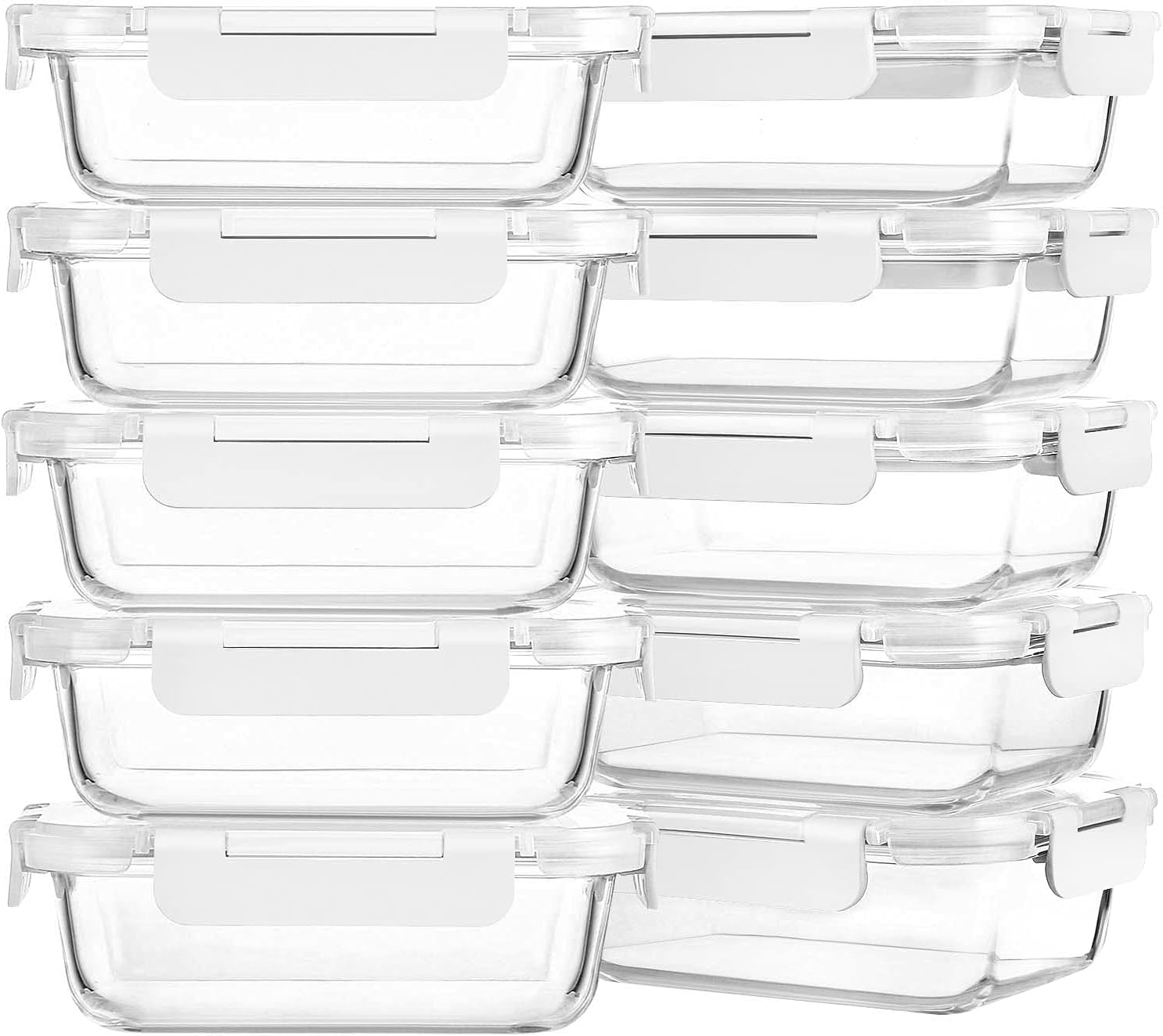 M MCIRCO [10-Pack,22 Oz Glass Meal Prep Containers,Glass Food Storage Containers with lids,Glass Lunch Containers,Microwave, Oven, Freezer and Dishwasher, White