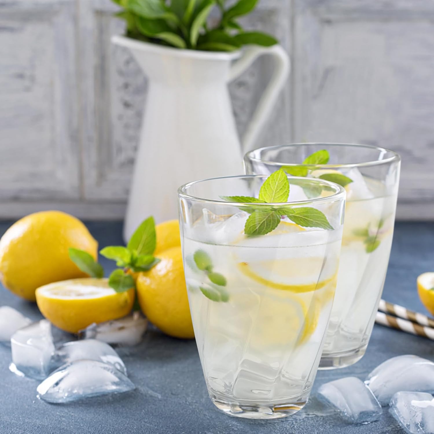 • MODERN DESIGN – This 4-piece drink tumbler set have a transparent look, 12.3-ounce maximum capacity | BPA-free. Diagonal lines for inner surface have been adopted for this drinkware cups set, there is a distorted visual effect. It’s here to add a touch of elegance to your glassware collection and dining table!