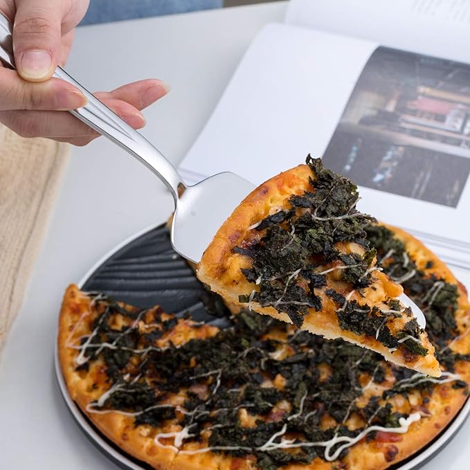 • The Stainless steel serving utensils set include: 9.5''Serving Slotted Spoon, 9.5''Serving Spoon, 9.4''Serving Fork, 9.3''Pie Server and 8.1''Butter Knife.