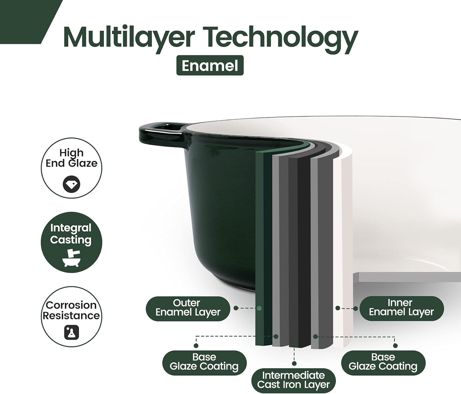 • Versatile usage: No need to season this large Dutch Oven, which features a gorgeous, white enamel. Grill, sear and fry your favorite dishes at the highest of temperatures and know that this pot can handle anything you cook in it