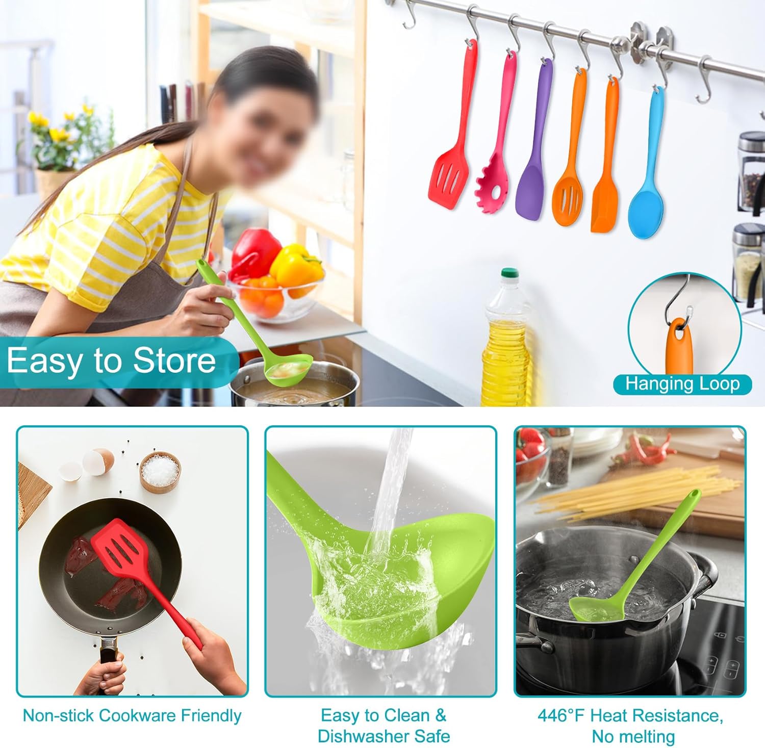 TeamFar Silicone Kitchen Utensils, 7-Piece Kitchen Cooking Utensil Set with Turner Spoon Spatula Ladle, Perfect for Baking Cooking Mixing, Heat-Resistant & Non-Toxic, Dishwasher Safe & Multi Colored