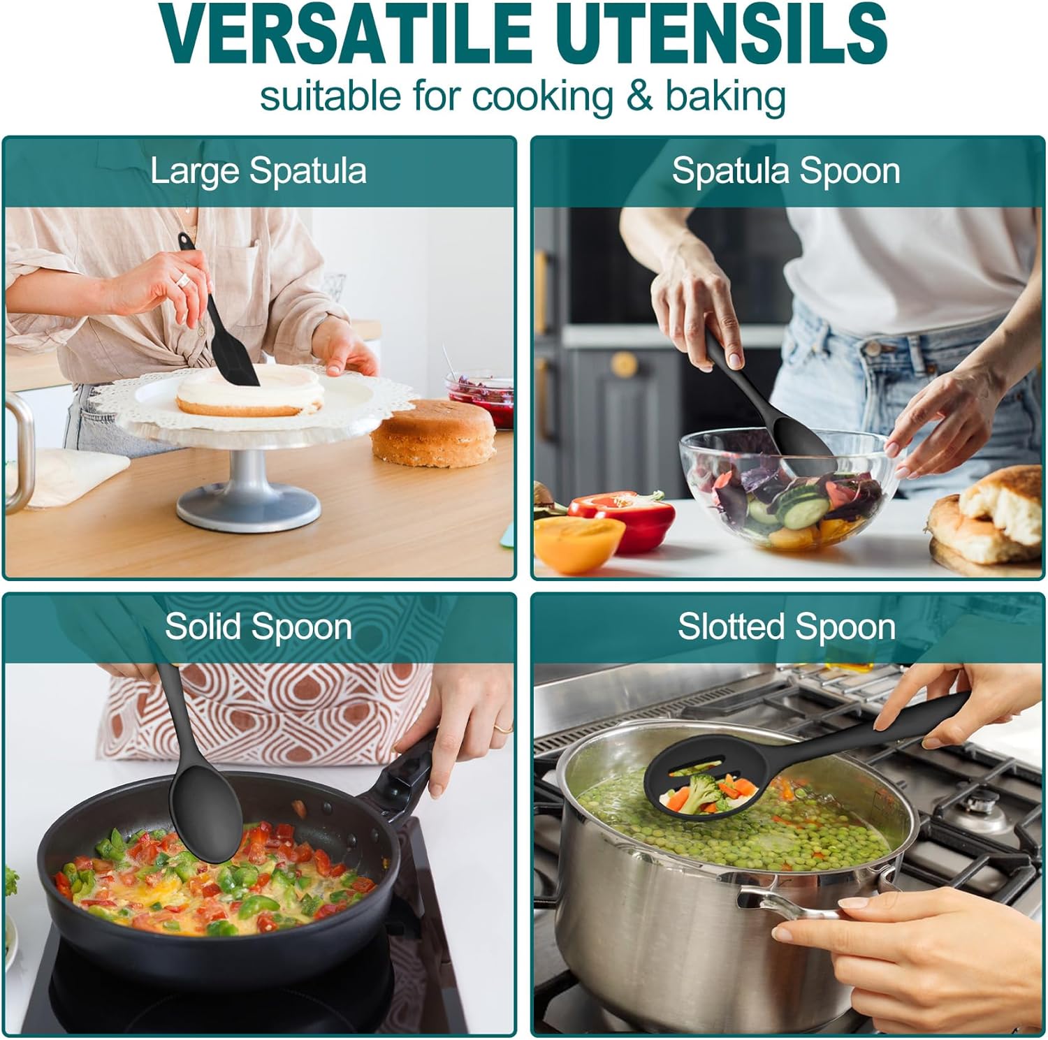 • Healthy & One-Piece Design: The kitchen utensils are made of food-grade silicone material, No reacting with food or beverages and not produce any hazardous fumes, Healthy for daily use, Seamless one-piece design enhance durability and toughness to keep the tools from cracking or deformation