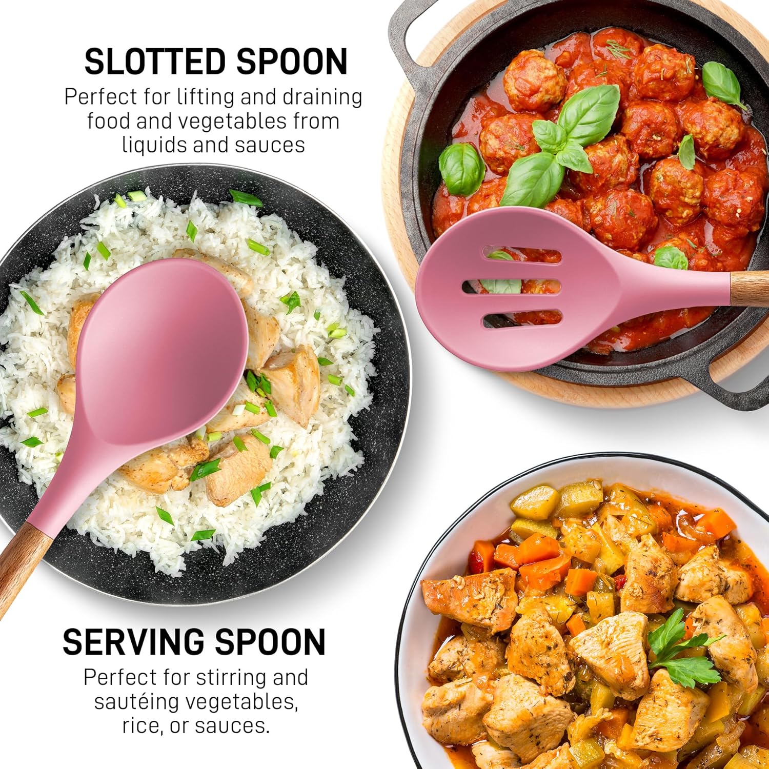 Zulay Kitchen Non-Stick Cooking Utensils Set with Authentic Acacia Wood Handles – 5-Piece Durable & Stylish Silicone Kitchen Utensils Set – Heat Resistant to 464°F – Pink