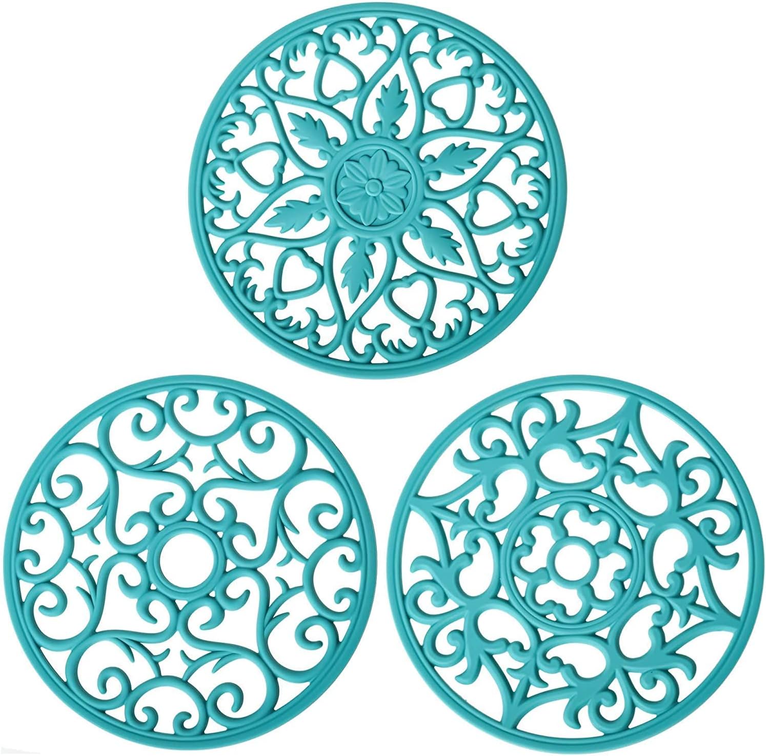 Smitchraft Silicone Trivets Hot Dishes, Pots & Pans, Hot Pads Kitchen Quartz Countertops, Pot Holders Trivet Mat, Non-Stick Heat Resistant Mats Counter & Table, Teal Kitchen Decor Accessories Set 3