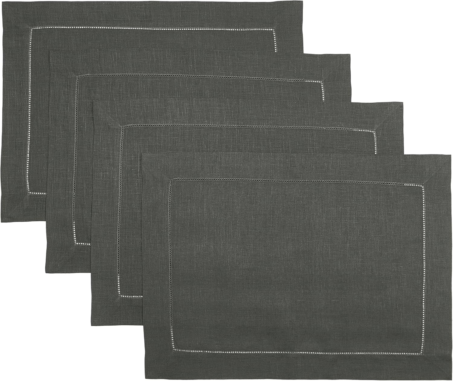 D'Moksha Homes Linen Placemats Set of 4 - Classic Hemstitch Charcoal Grey Placemats 14 x 19 Inch - 100% Pure Linen Table Mats for Fall, Autumn and Halloween - Handcrafted and Machine Washable