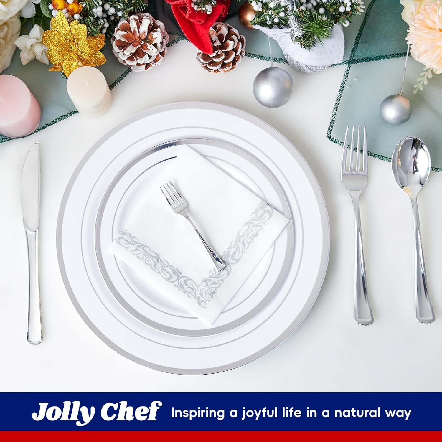 • PREMIUM QUALITY & REUSABLE: The heavyweight silver plastic plates offer the best quality you can find in plastic dinnerware. The disposable plates are strong enough to hold a full plate of food.You can even wipe it clean after use for the next use