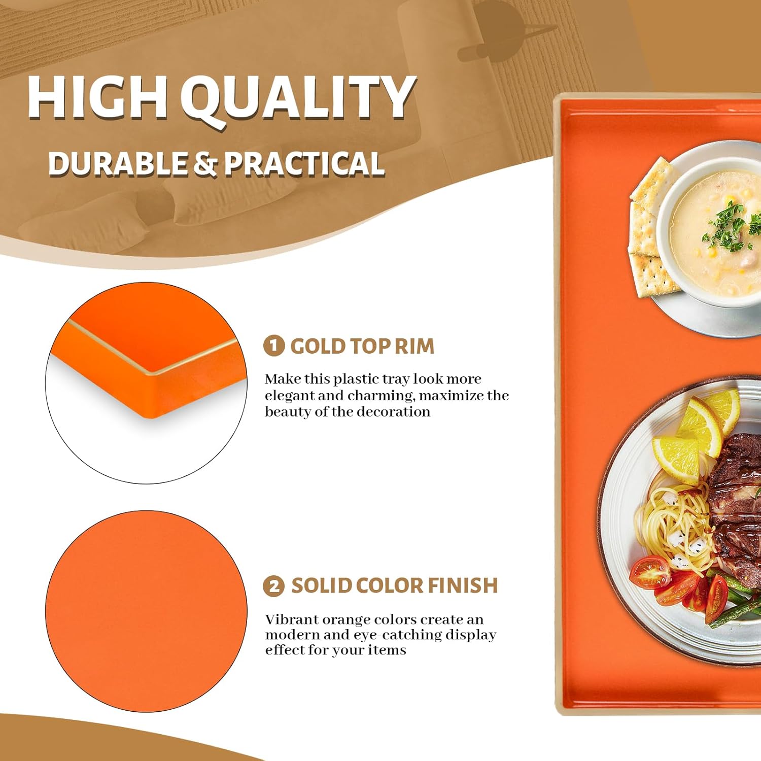 • TRAY DECOR: Orange tray is often used to present food and drinks in an appealing and organized manner. Rectangle tray can enhance the visual appeal of the items being served, making them more enticing to guests or customers. Also place it on your bathroom vanity as an exquisite showcase for perfumes, jewelry, or bath accessories.