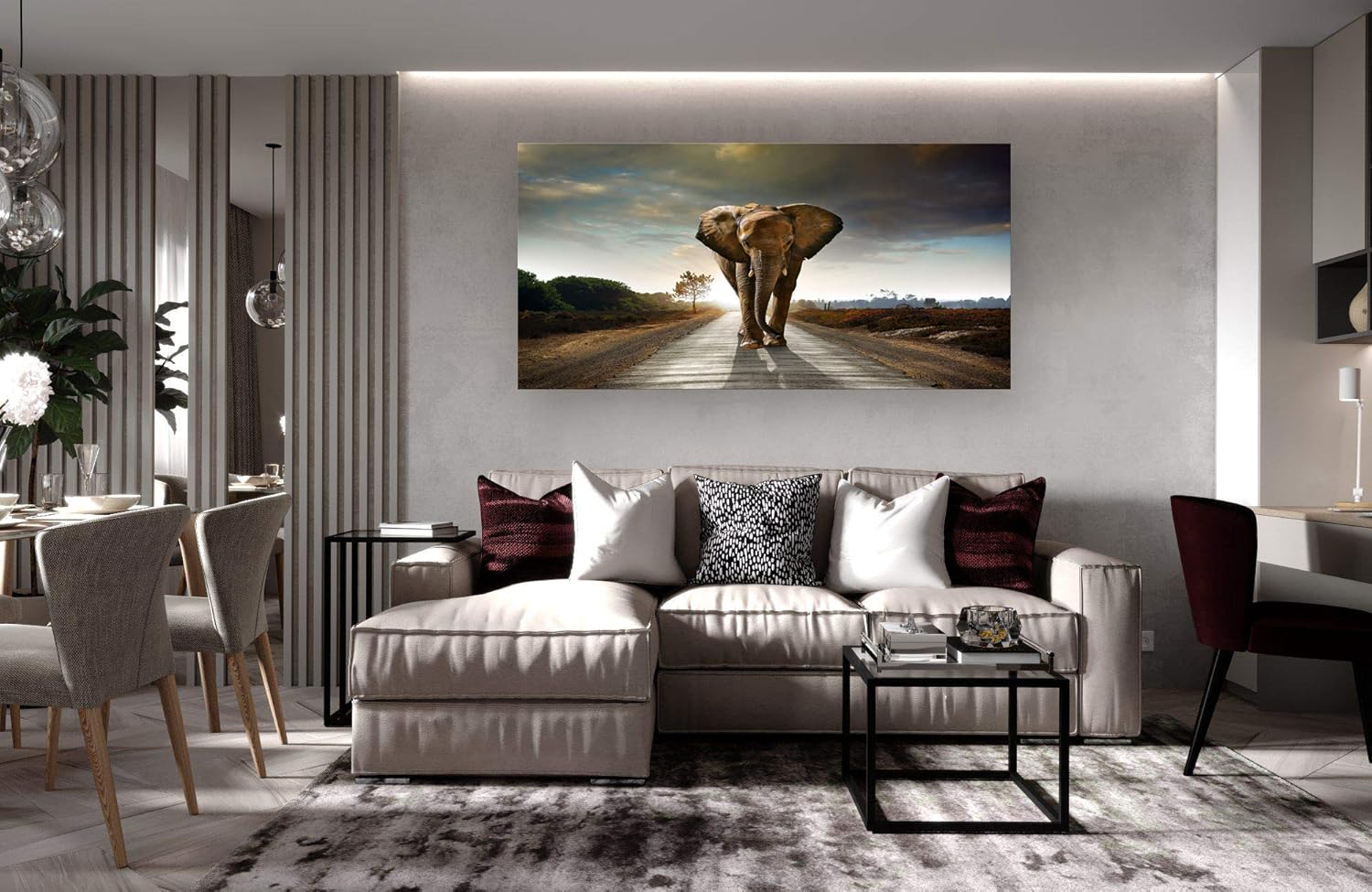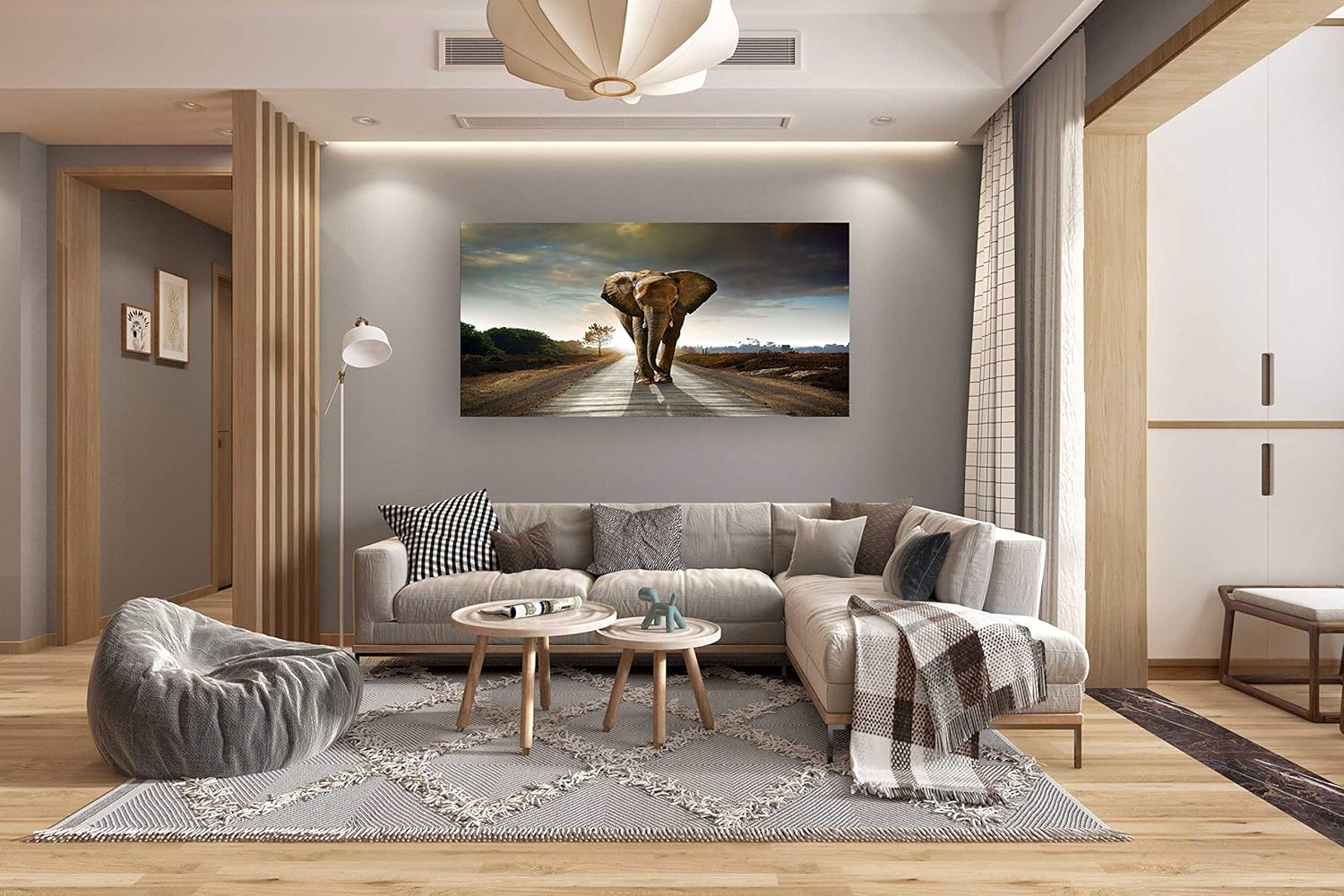 Muolunna D1262 Elephant Canvas Prints Wall Art Animals Photo Pictures Painting on Canvas Decor for Living Room Bedroom Home Office kitchen Wall Decor Stretched and Framed Grey Landscape Artwork