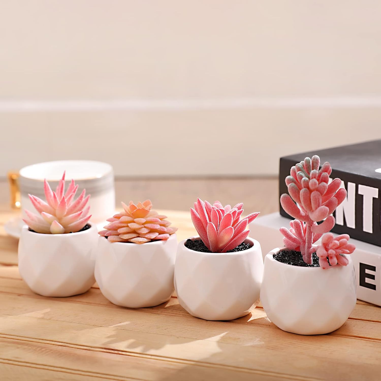 Tiita Artificial Faux Succulents in Pots, Pink Fake Plants Ceramic Arrangement Planter for Women Desk Small Mini Tiny Decoration for Home Office Desk Window 4 Set, Pink