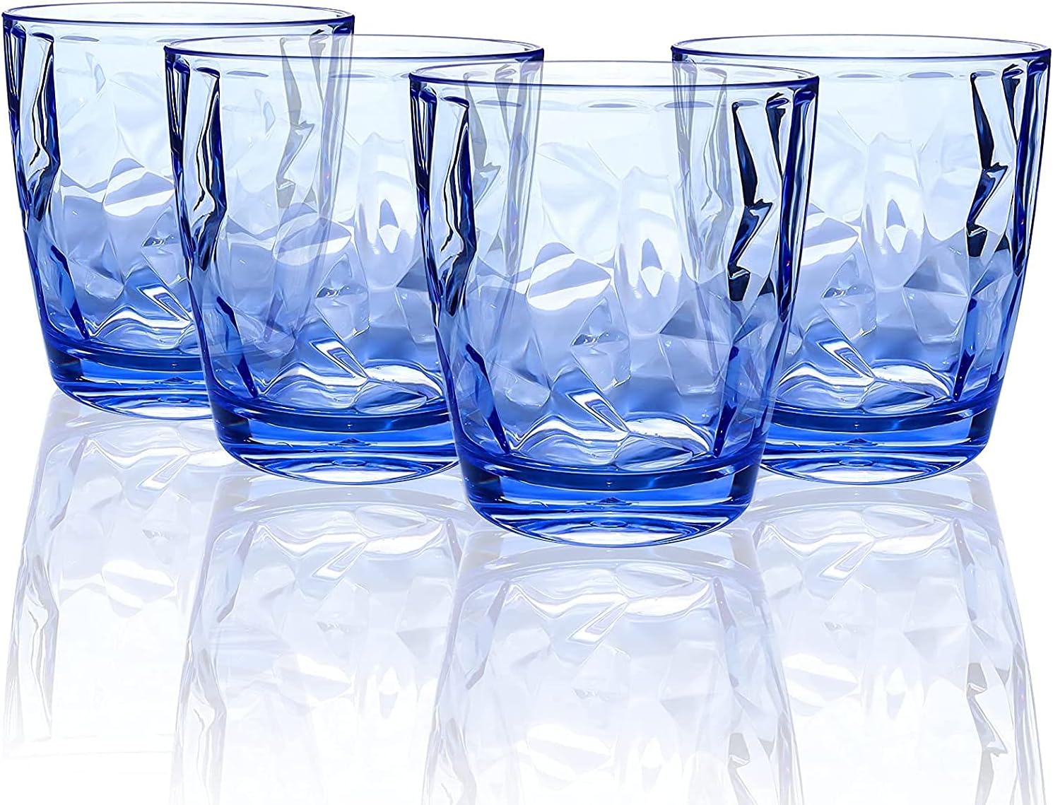 Topsky 10 oz Plastic Water Tumblers | Set of 4 Transparent Unbreakable Drinking Glasses Clear Acrylic Reusable Juice Wine Cups for Home Picnic Party, Dishwasher Safe, Stackable (Blue)