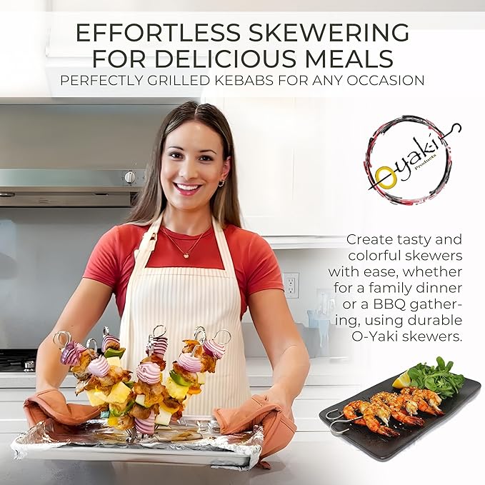 • STAINLESS STEEL BBQ SKEWERS FOR DURABILITY: O-Yaki’s metal skewers are made from durable stainless steel, ensuring they are resistant to rust and can withstand repeated use. These sturdy BBQ skewers won’t bend or break, providing a consistent grilling experience for meats, veggies, seafood, and more.