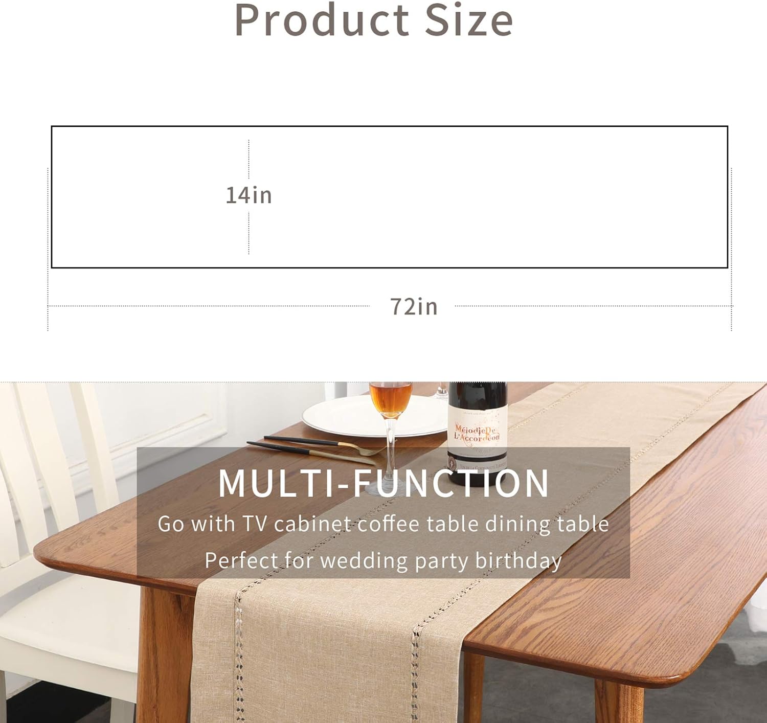 • PERFECT DECORATION - It's a natural and luxury feel table runner, very refined, durable and lightweight. Simple color that creates simple elegance. Size: 14 x 72 inches, Pack of 1. Perfect length for 4ft tables, dresser or mantel etc.