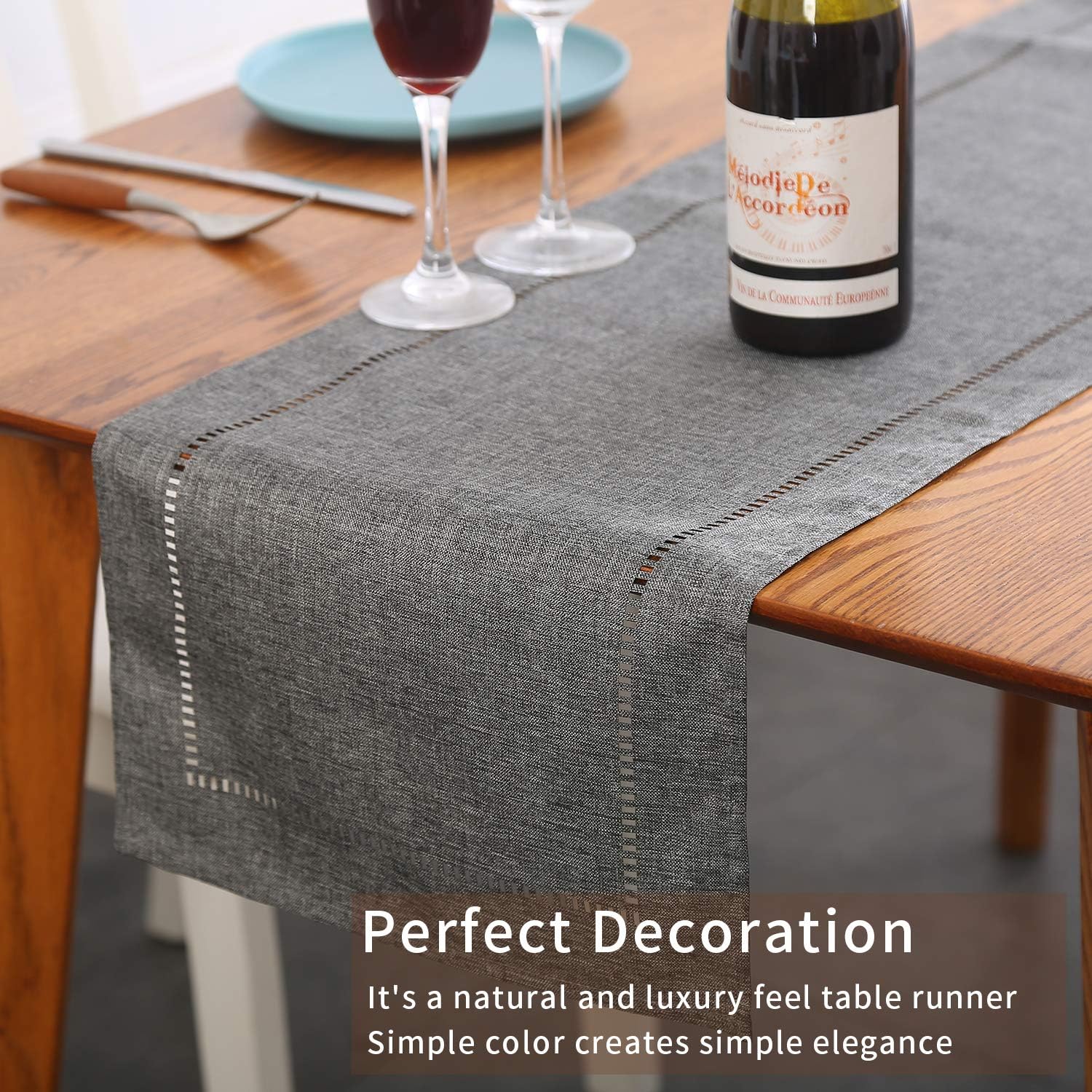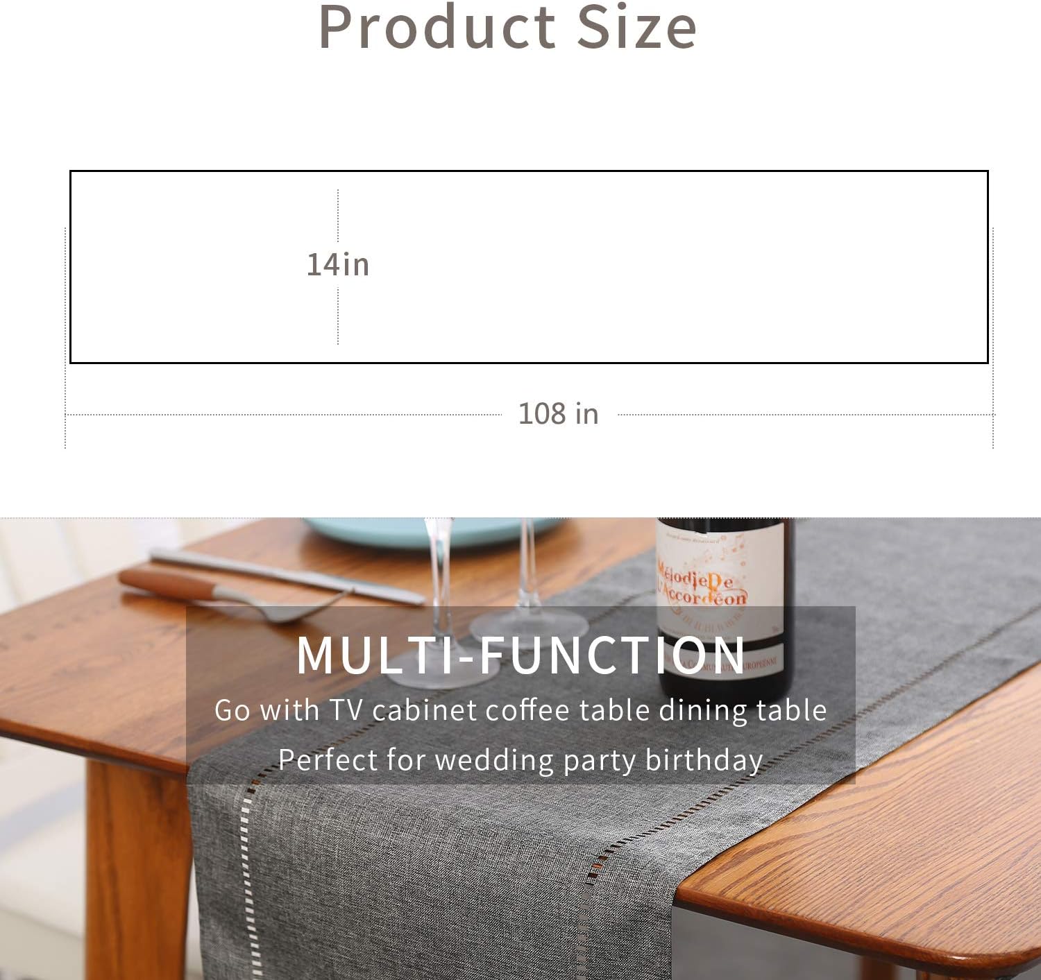Tosewever Decorative Linen Table Runner Farmhouse Style Tabletop Collection 14 x 108 Inches Table Runners for Everyday Dining Wedding Party Holiday Home Decor (14" x 108", Grey/Straight)