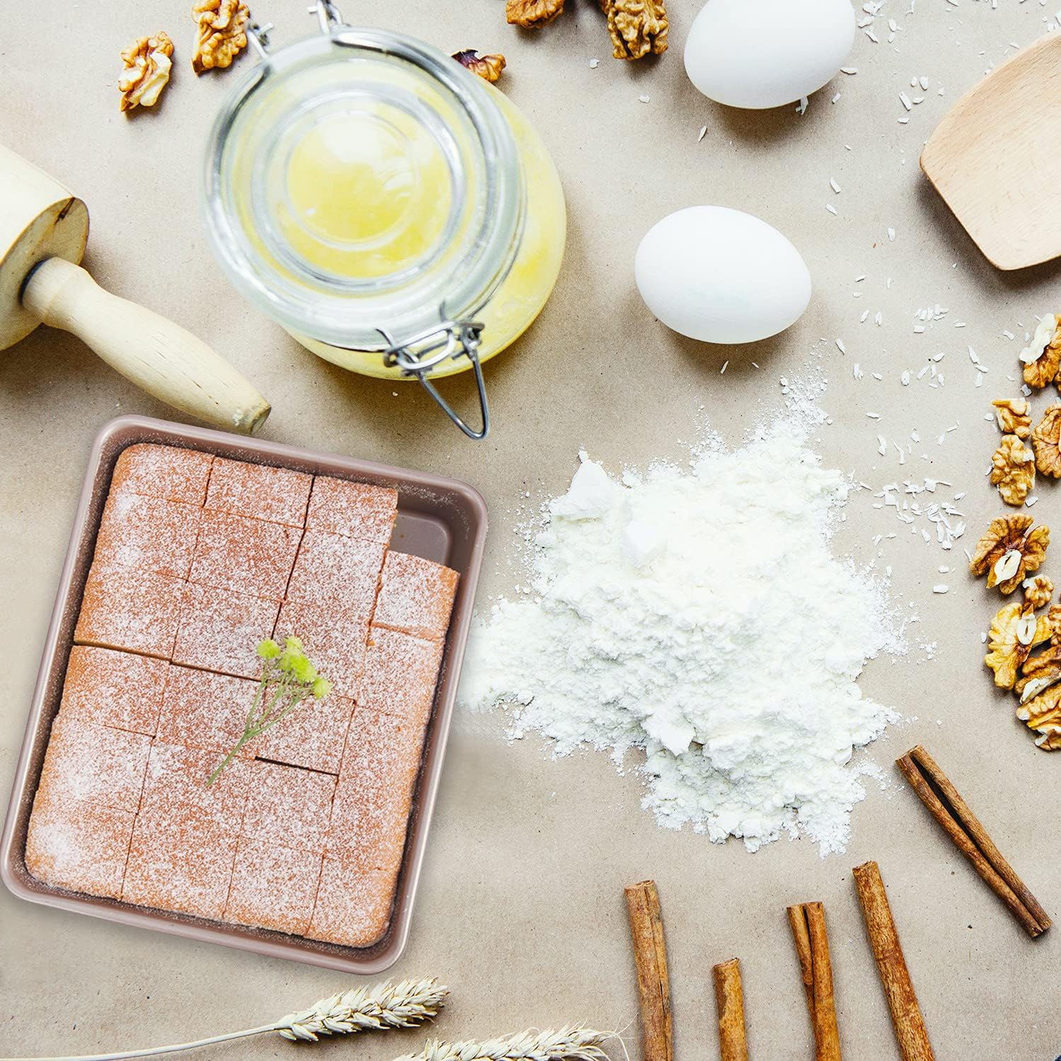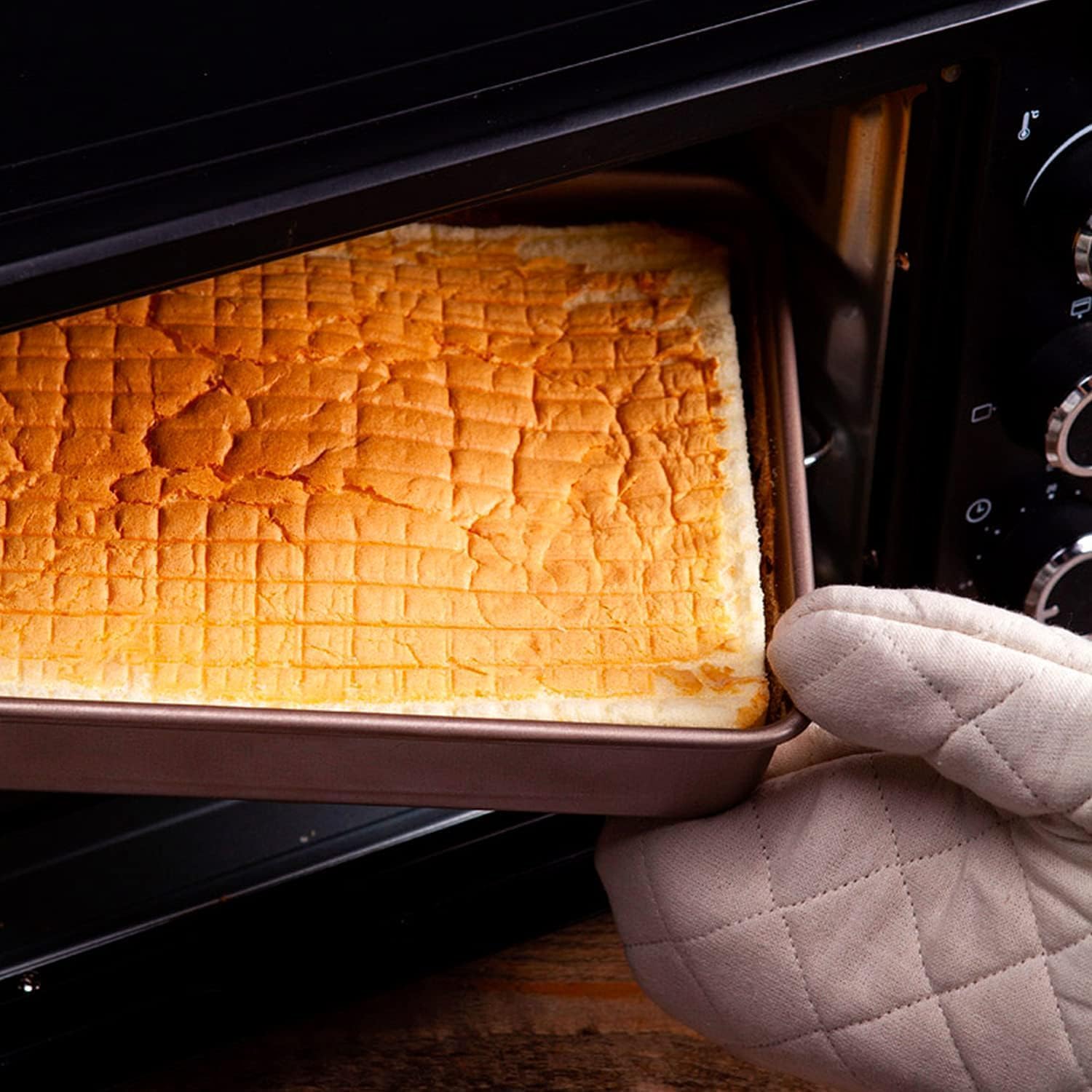• Non-stick, Easy to Clean- The non-stick baking sheet has great mirror finish to reduce the risk of food sticking, easy to release the food while effectively reducing grease adsorption, makes it easy to clean up, just rinse the rectangle cake pan oven pan under water or run through the dishwasher