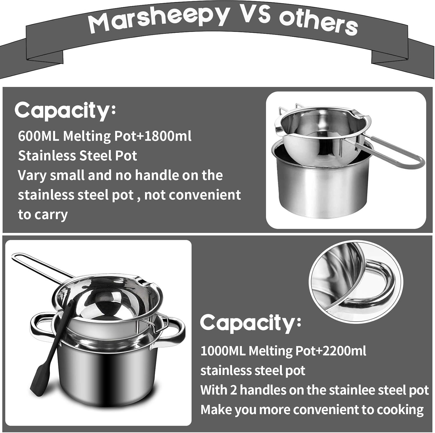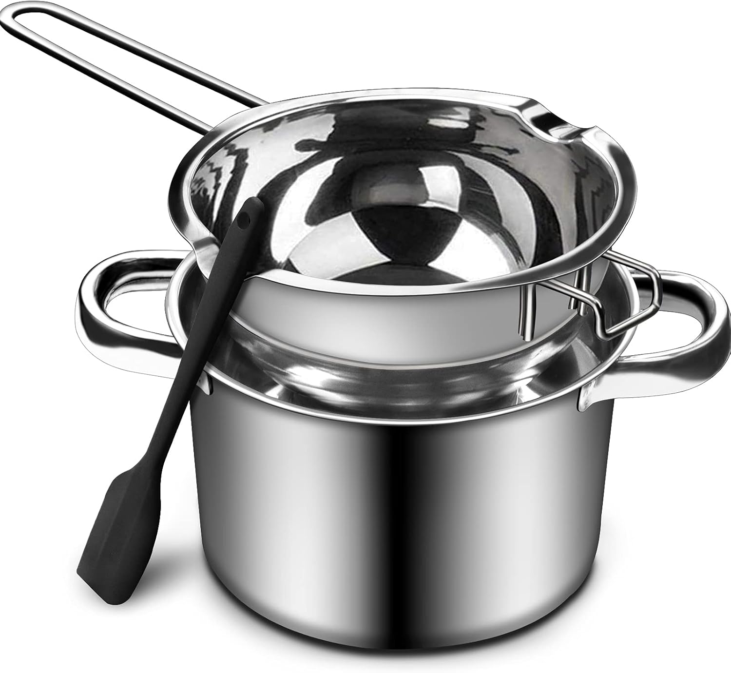 1000ML/1QT Double Boiler Chocolate Melting Pot with 2QT 304 Stainless Steel Pot, Chocolate Melting Pot with Silicone Spatula for Melting Chocolate, Candy, Candle, Soap, Wax