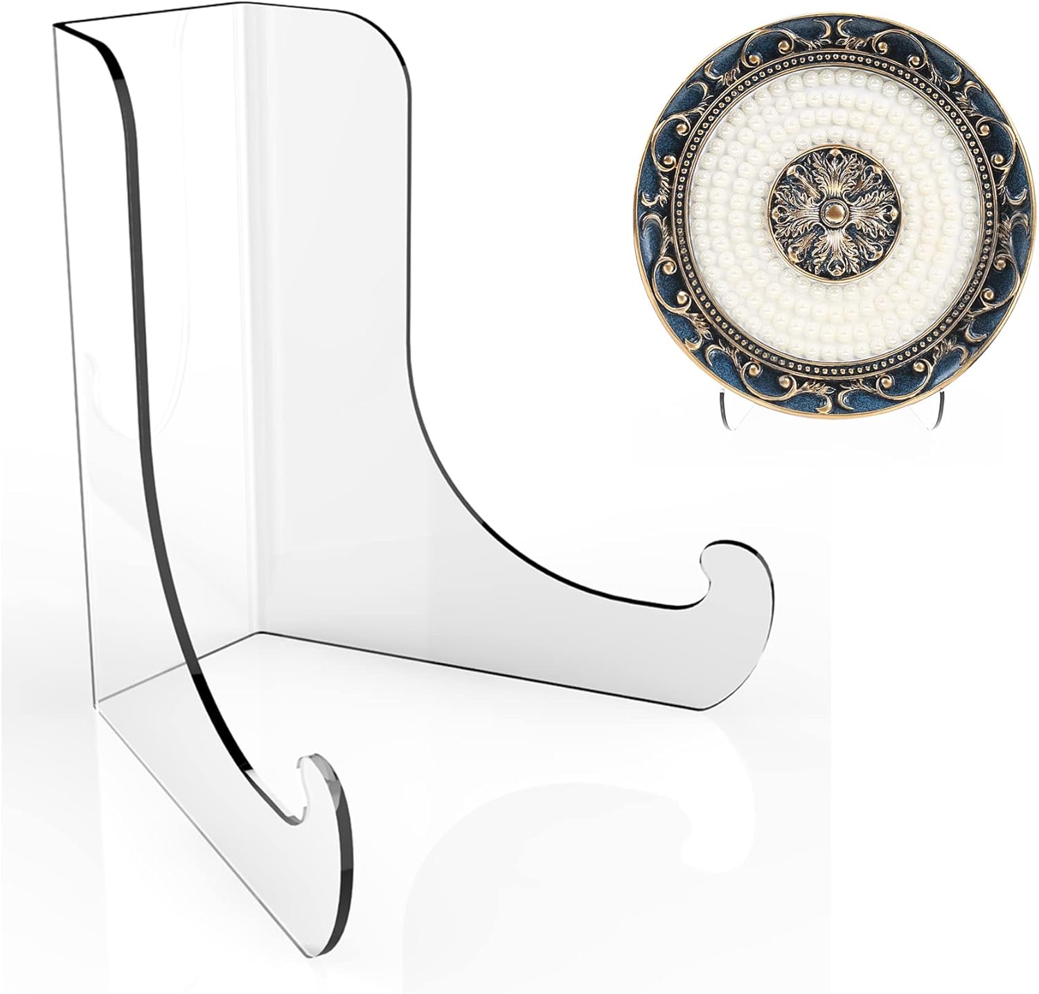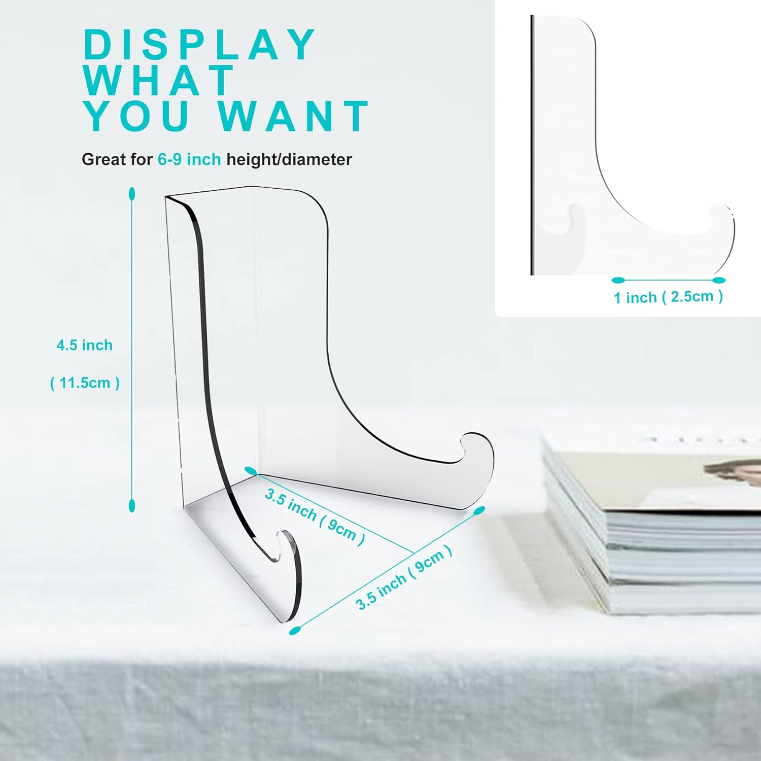 Boloyo Flat Back Acrylic Plate Display Stand , 4.5 Inch 2PC Clear Acrylic Display Holder Easel Base for Home Office Kitchen School Art Display