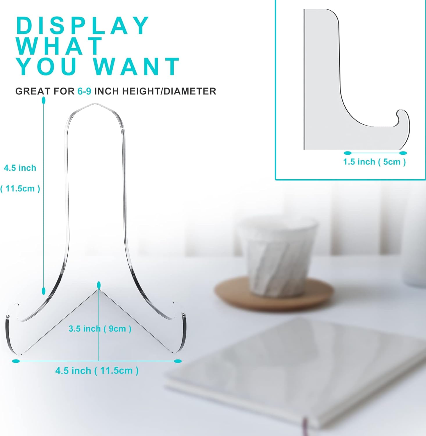 Boloyo 60-Degree Angle Acrylic Plate Display Stand , 4.5 Inch 5PC Clear Acrylic Display Holder Easel Base for Home Office Kitchen School Art Display
