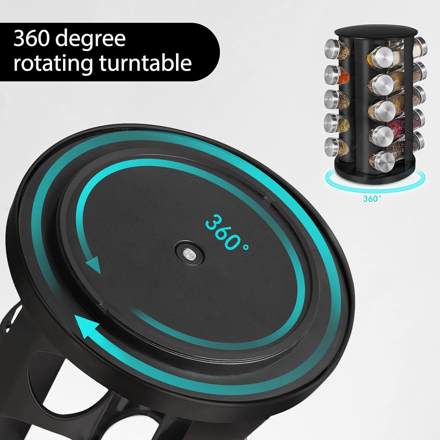 • Convenient Access and Find the Spice Quickly - The rotating spice rack can be 360 degree free rotation, bringing all the glass spice jars into view. 32 reusable and self-defined spice labels make finding the spice of choice as easy as possible.