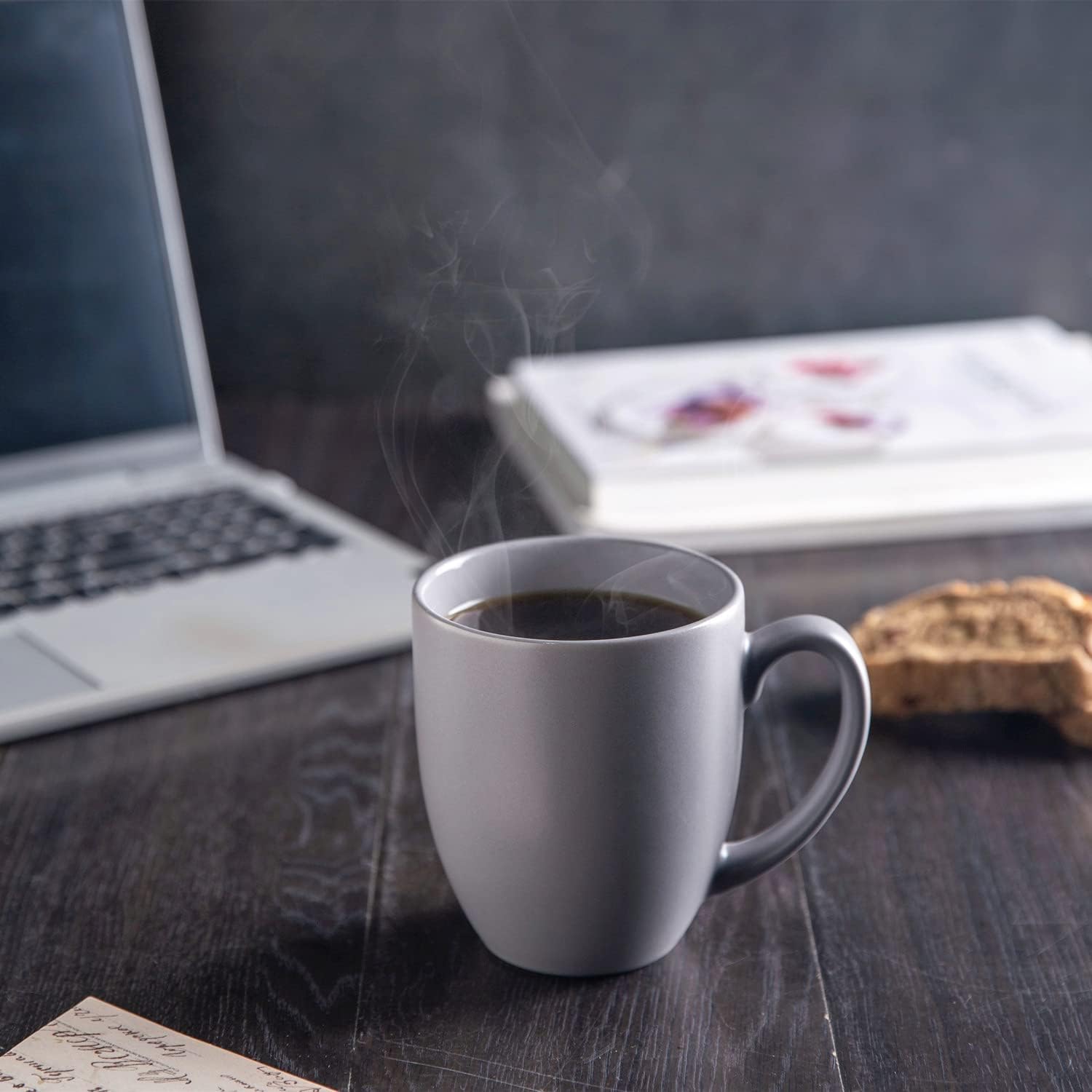 AmorArc Coffee Mugs Set of 6, Ceramic coffee mugs with large handle for Men Women,16oz Coffee Mugs for Coffee,Tea,Latte,Cocoa. Easy to Hold&Clean, Dishwasher&Microwave Safe, Matte Grey