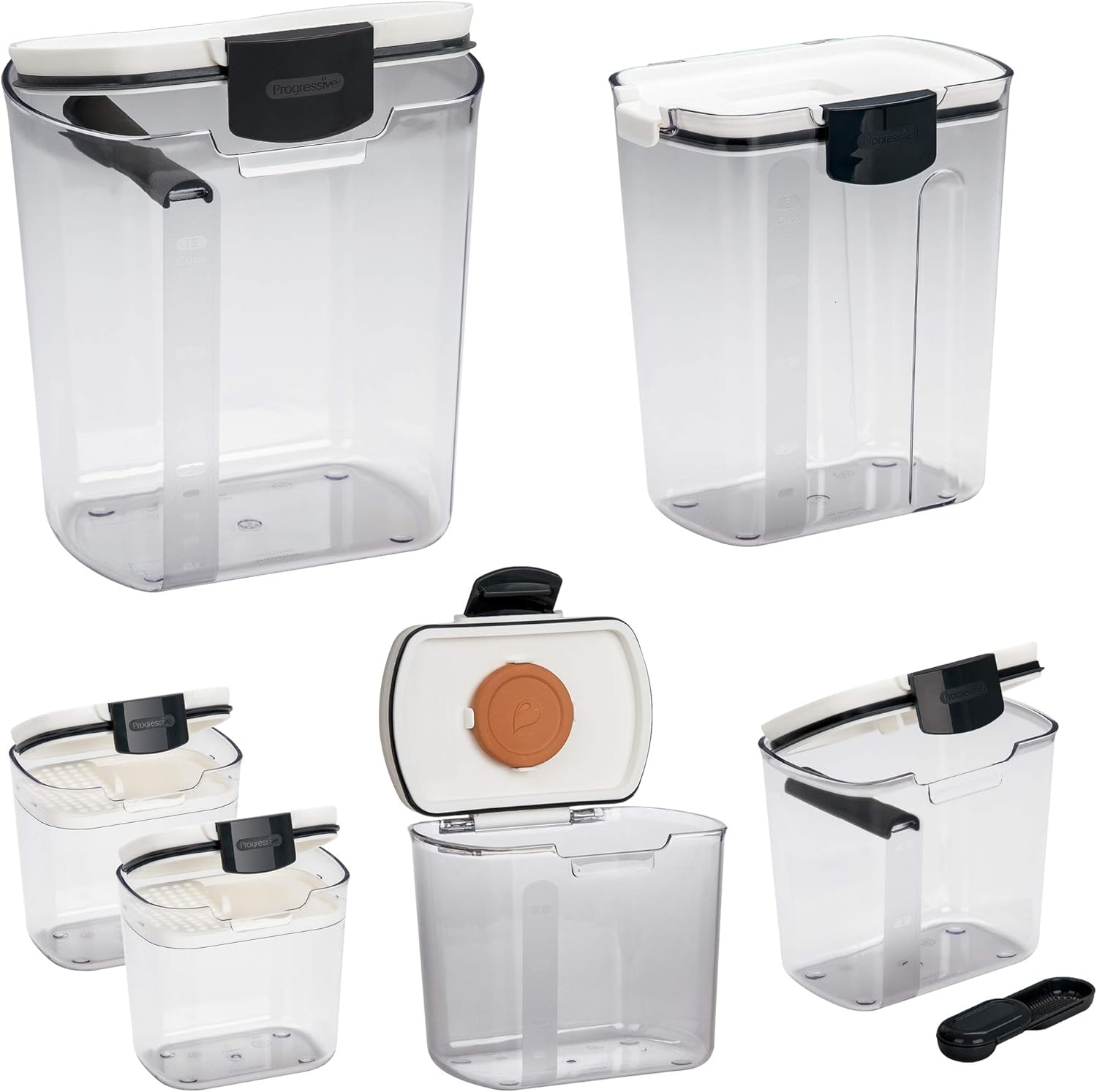 Progressive ProKeeper Baker's Airtight Kitchen Storage Canister Container Set for Flour, Sugar & More, Keeps Ingredients Fresh, with Accessories (Black Latches, 6- Piece)