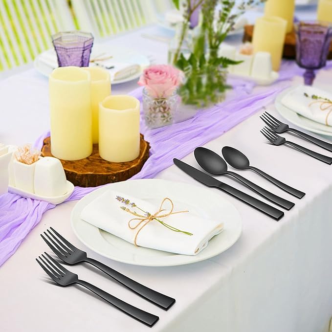 • Premium quality, the black flatware set is crafted from quality stainless steel with no harmful substances, rust resistance, no metallic taste in your mouth after using, solid structure and will not bend or flimsy, durable and sturdy for long term usage