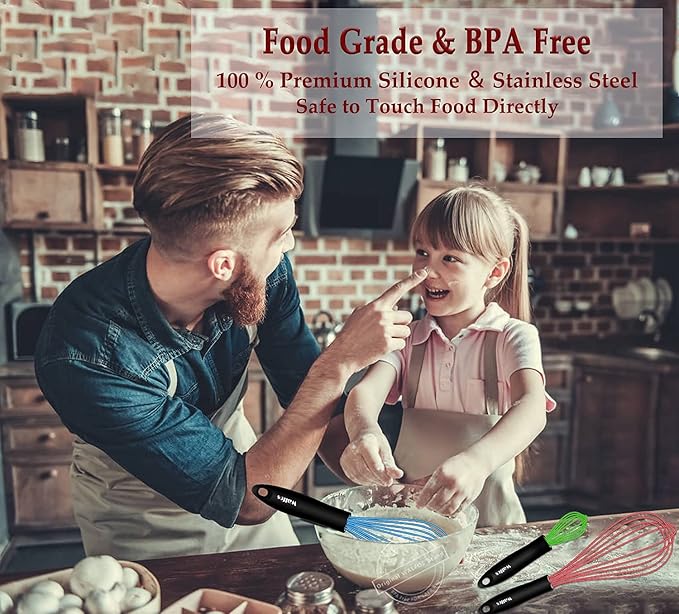 • High performance, sturdy and safe : Walfos Whisks for cooking allows to withstand high heat resistant up to 480℉.Our non-stick whisk for vigorous whipping and aerating while making your favorite foods. 3 different color and sizes wisk 7+9+11in,they will meet all your diverse cooking needs
