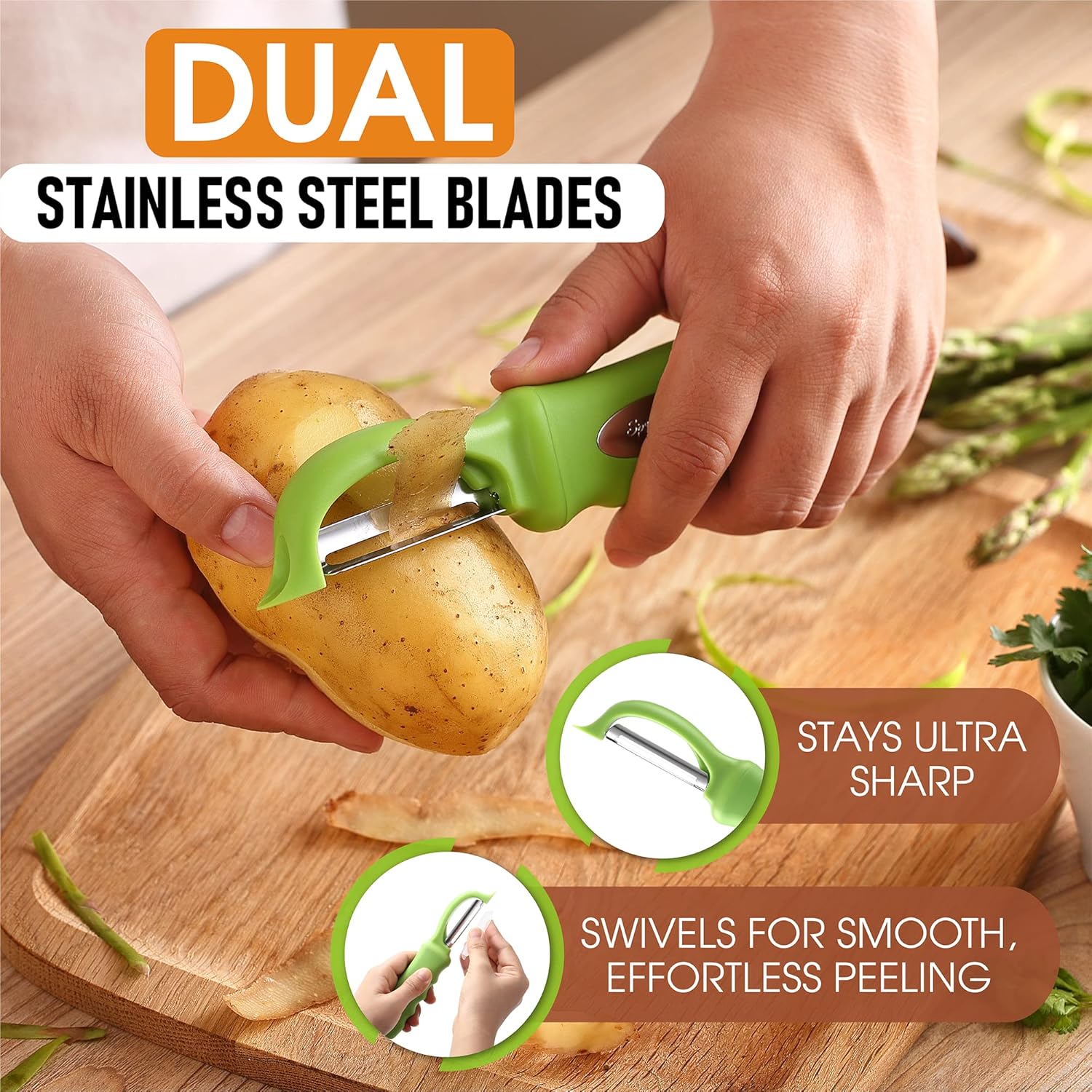 Spring Chef Premium Swivel Vegetable Peeler, Soft Grip Handle and Ultra Sharp Stainless Steel Blades - Perfect Kitchen Peeler For Veggie, Fruit, Potato, Carrot, Apple - Green