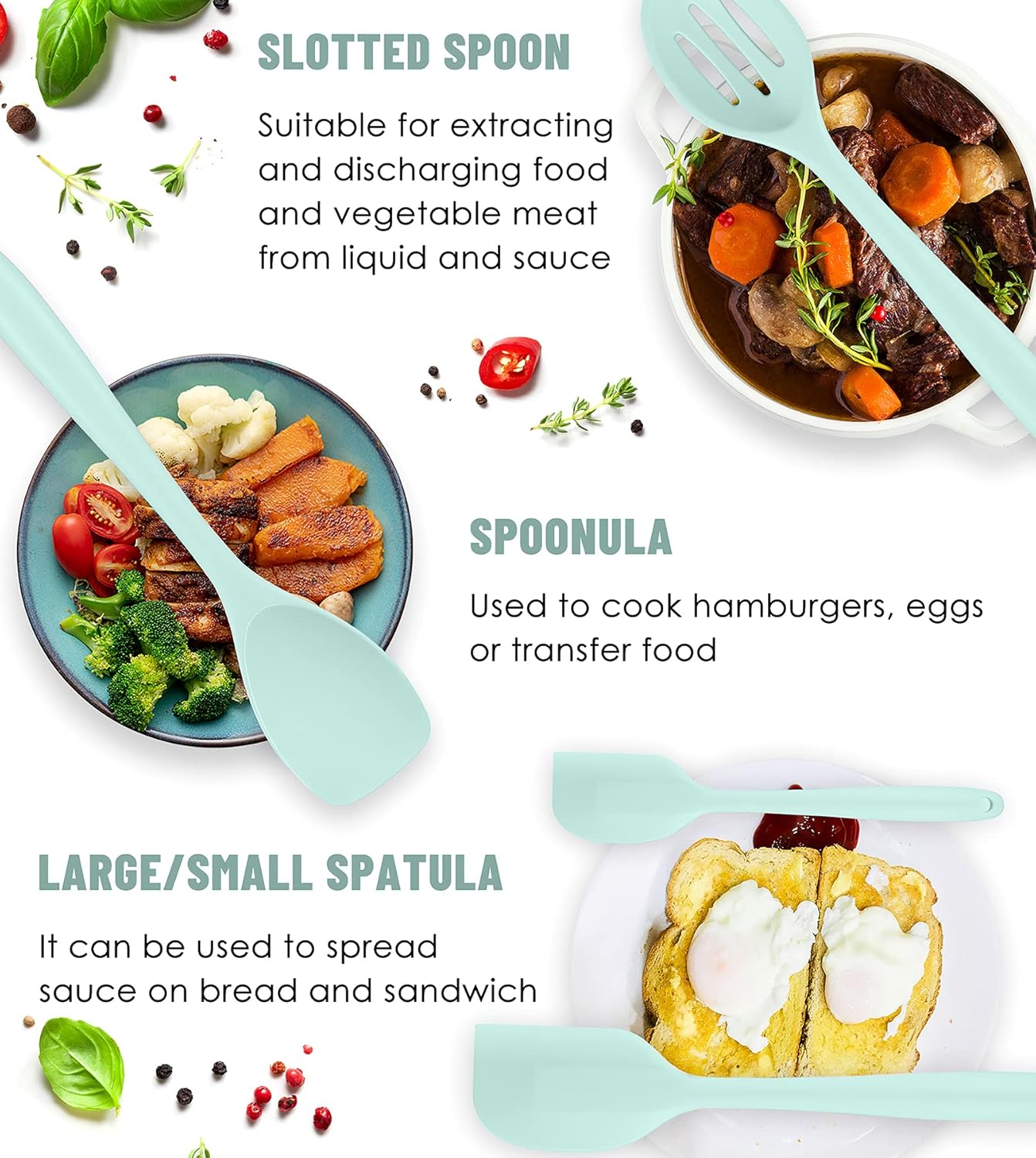 • ❤【High Heat Resistant&Avoid The Melt】Non-stick Cooking Utensils can withstand temperatures ranging from -22°F/-30°C to 392°F/200°C. Featuring non-scratch and softness, which extend the life of all your kitchen pans. No longer worry silicone will melt if accidentally leave these kitchen utensils in the pot for a while.