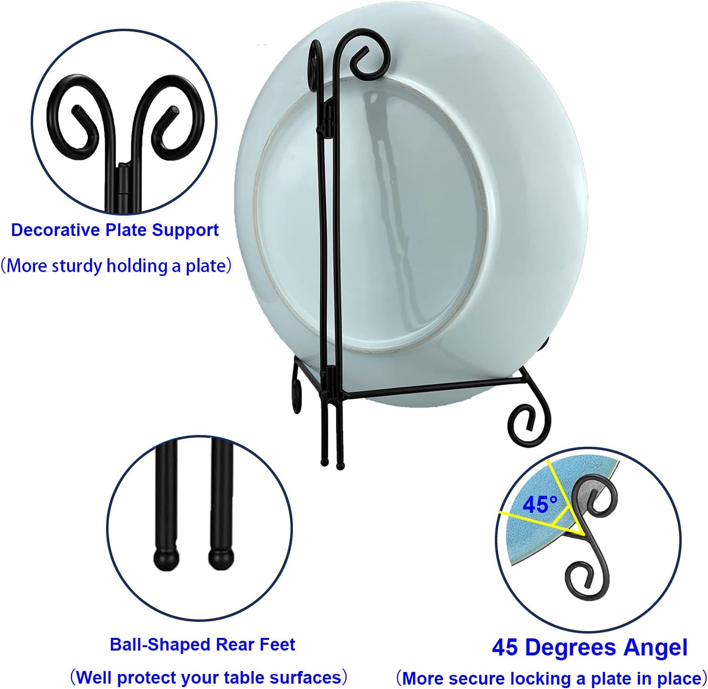 • Heavy-Duty Design, the plate stand was made from high quality iron wire with black powder coating features, it’s rust-resistant, UV-resistant and scratch-resistant. Long lifetime with stylish design.