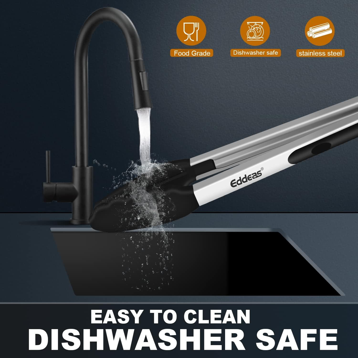 • FOOD GRADE MATERIALS - Eddeas tongs for cooking featuring a food grade silicone head, the tongs are gentle on your nonstick cookware so you can worry less about scratching and wear and tear, silicone is heat resistant up to 484 degrees Fahrenheit, making it a great option for nearly any cooking task.