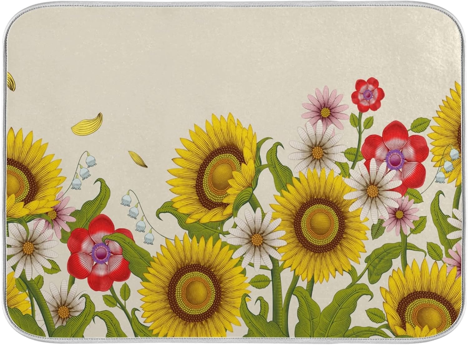 Dish Drying Mat for Kitchen Counter 18 x 24 Inch Decorative Flowers Sunflowers Super Absorbent Microfiber Dish Drainer Rack Mats Soft Heat Resistant Drying Protector Pad