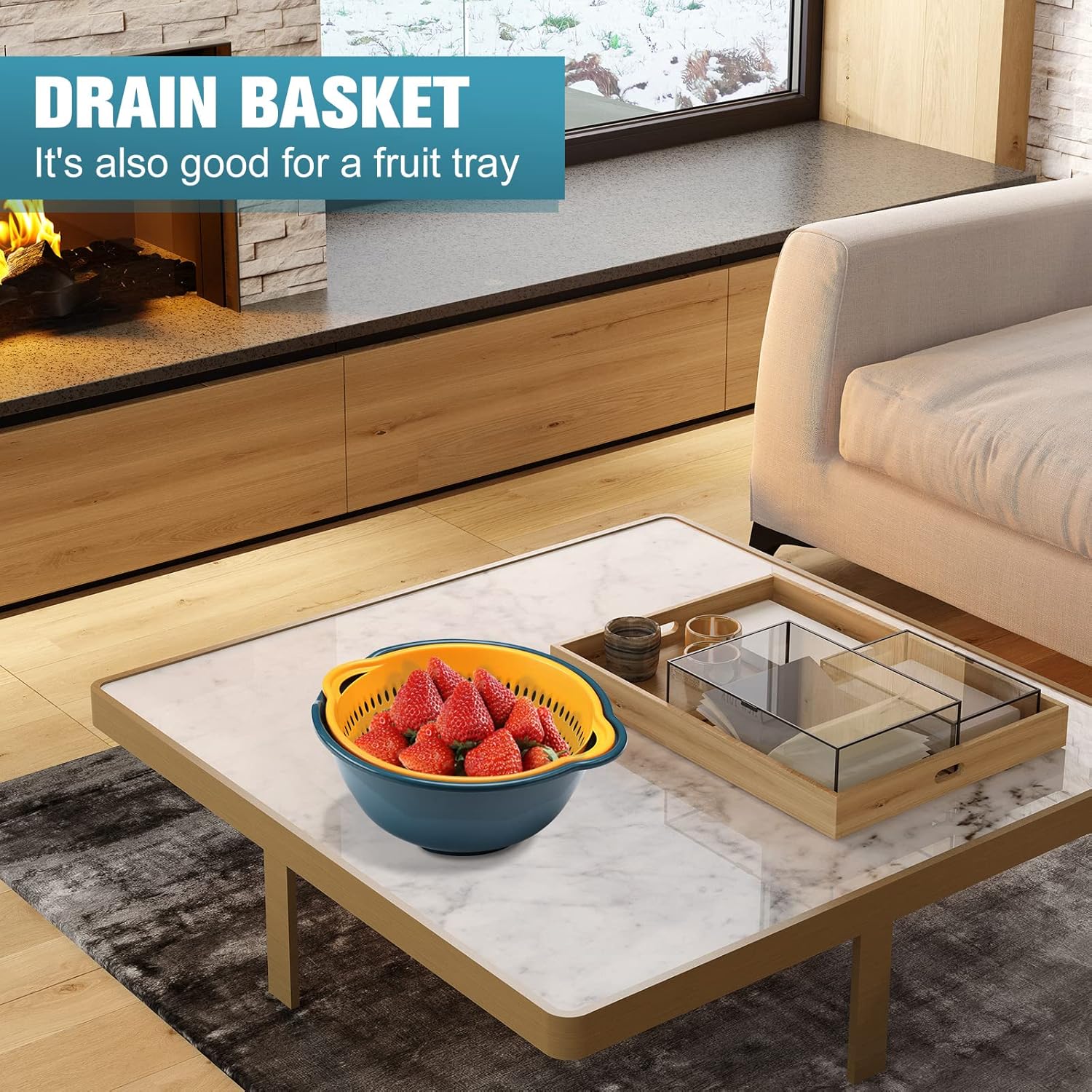 • 4. Bright colors, two side handles, stylish and modern design, the washing and draining bowl is not only a good partner in the kitchen, the draining basket at the bottom can also be used as a lid.