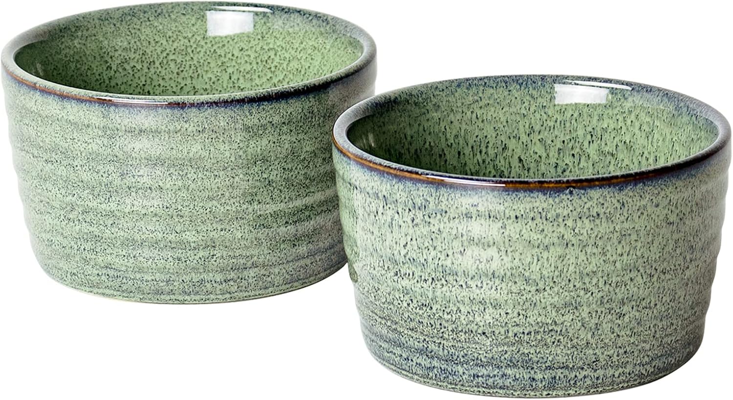 UNICASA Ramekin Set of 2, UNICASA 8 oz Creme Brulee Ramekins, Oven Safe Baking Set for Custard, Pudding, Souffle Cups, Reactive Green