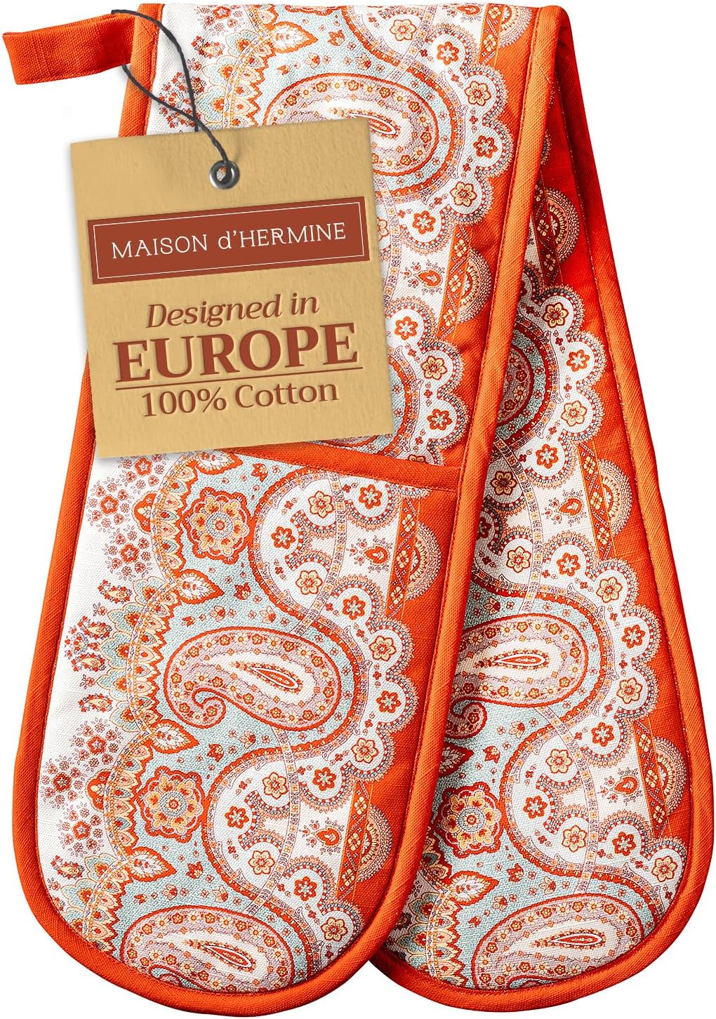 Maison d' Hermine Double Oven Mitt (7" x 35") 100% Cotton Heat Resistant BBQ Cooking Gloves with Loop for Thanksgiving Christmas Decorations Baking Cooking Barbeque Handling Hot Pan (Cachemire)