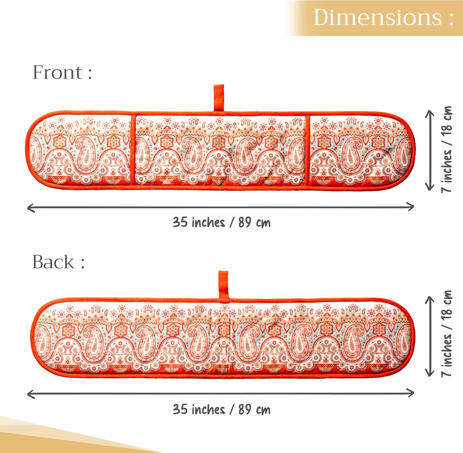 • Package Includes: Set includes 1 double oven mitt measuring 7.5" x 35", perfect for baking, roasting, and cooking. Made from 100% cotton for reliable heat protection and comfort. Designed in Europe and made in India