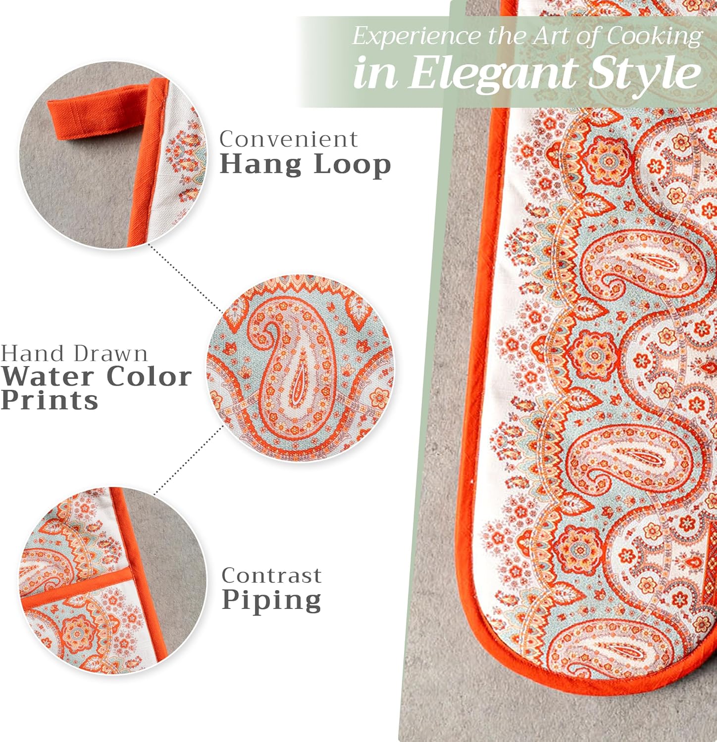 • Unique Design: Inspired by Europe, featuring exquisite watercolor artwork where each design embodies over 120 hours of hand-painted artistry. The rich hues and fine detailing make this Double Oven Mitt perfect for holiday tables, fall decor, Thanksgiving decorations, or festive Christmas decorations