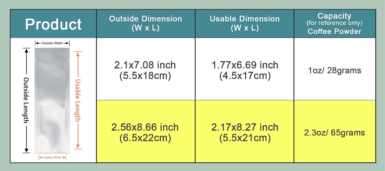 PABCK 100 Pcs 2.56x8.66 inch (Inside Size 2.17x8.27 inch) Clear Front Vacuum Heat Sealable Pure Mylar Foil Bag for Travel Sampling Packaging Food Storage Aluminum Foil Candy Coffee Powder Package