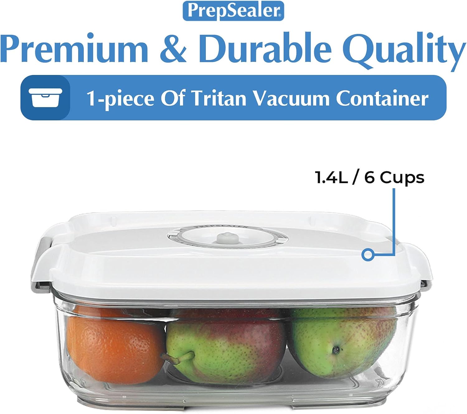 PrepSealer Food Saving Airtight Meal Prep BPA-free Tritan Vacuum Container (1.4L) - Pump not Included