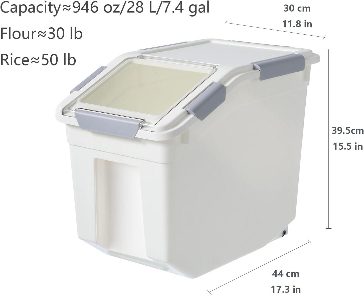 • 【LARGE OPENING OBLIQUE DOOR & HIDDEN WHEELS】 The storage box uses a large clean inclined opening to facilitate finding and taking out food. There are 2 wheels hidden behind the food storage container, you only need to lift the front to move it easily.