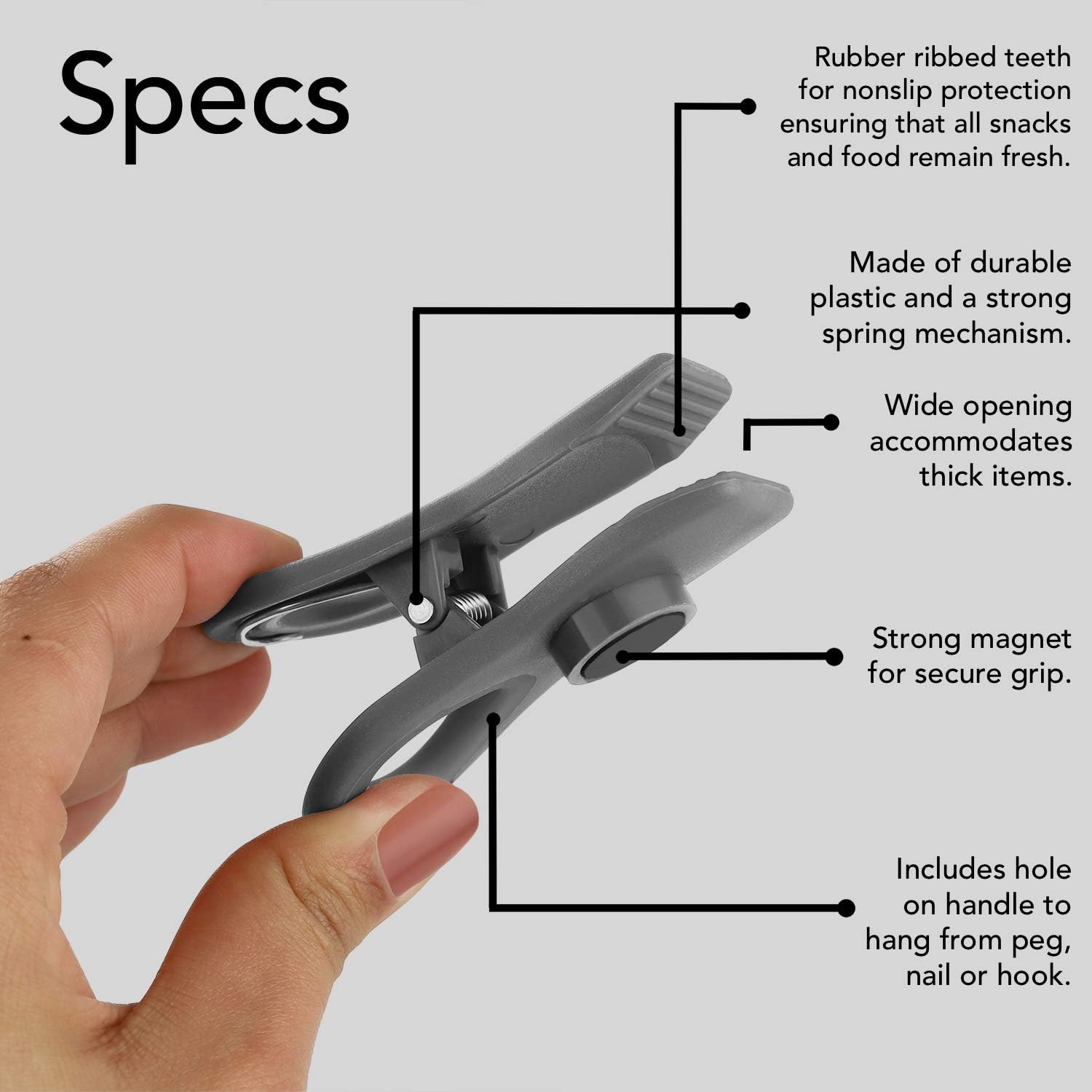COOK WITH COLOR Bag Clips with Magnet- Food Clips, Chip Clips, Bag Clips for Food Storage with Airtight Seal Grip for Bread Bags, Snack Bags and Food Bags (Grey, Pack of 20)