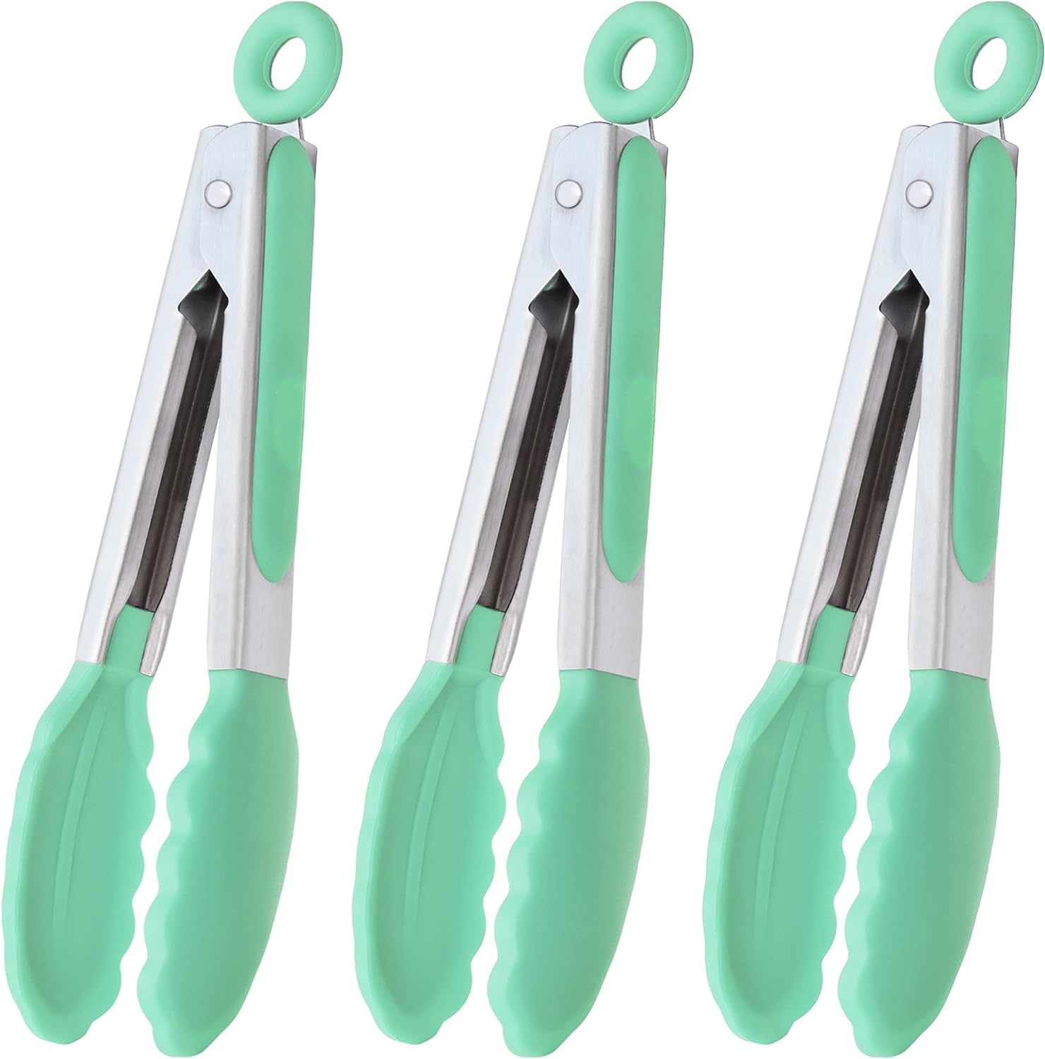 Mini Tongs with Silicone Tips 7 Inches Silicone Cooking Tongs, Set of 3 (Mint)