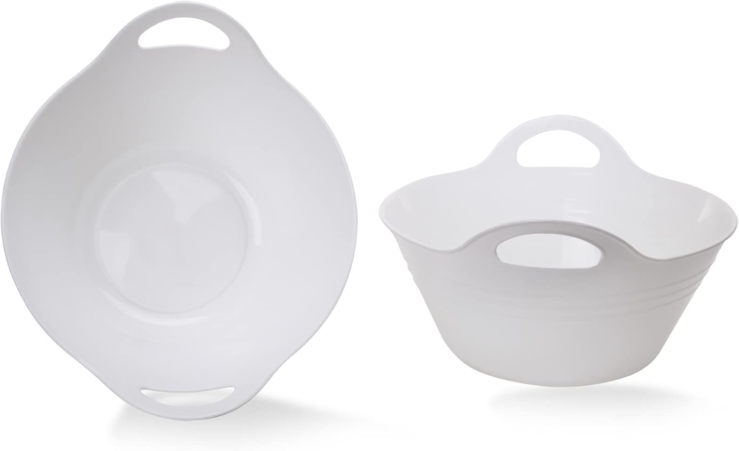 Mintra Home Plastic Bowls with Handles (4.5L Large, 2 Pack, White) – 11.25”W x 5”H (6.75”H with Handles)