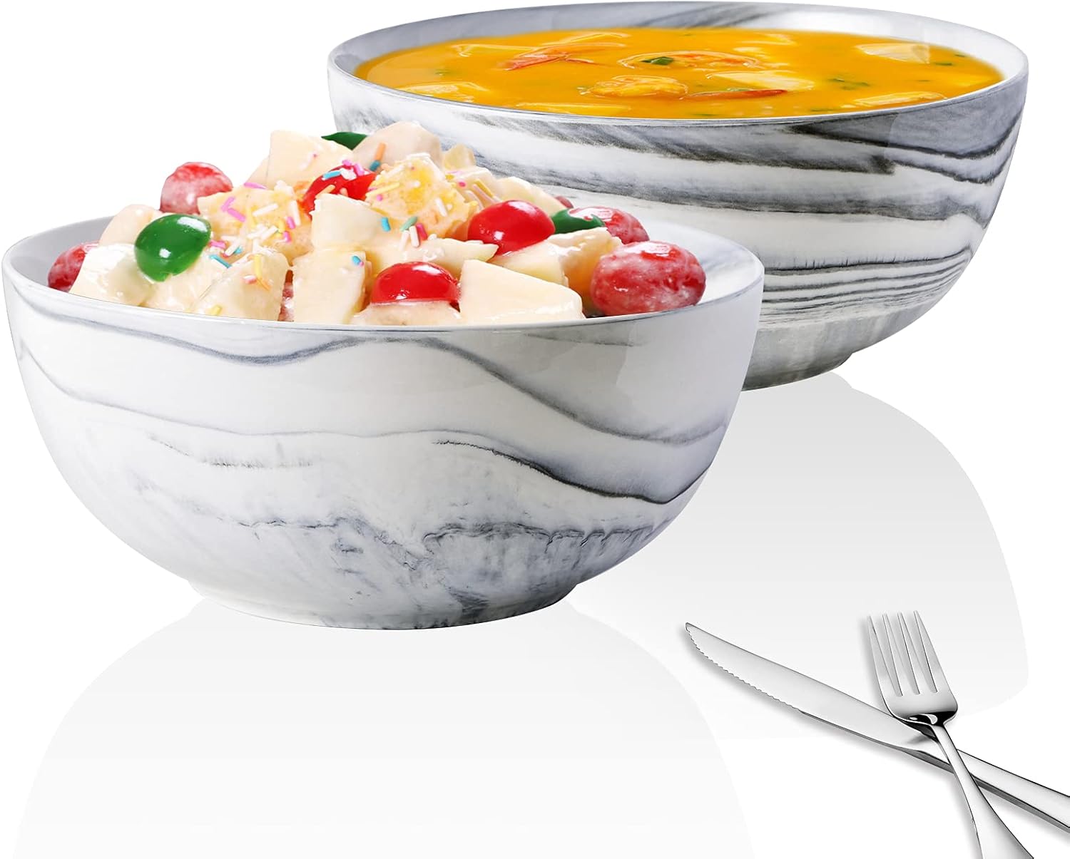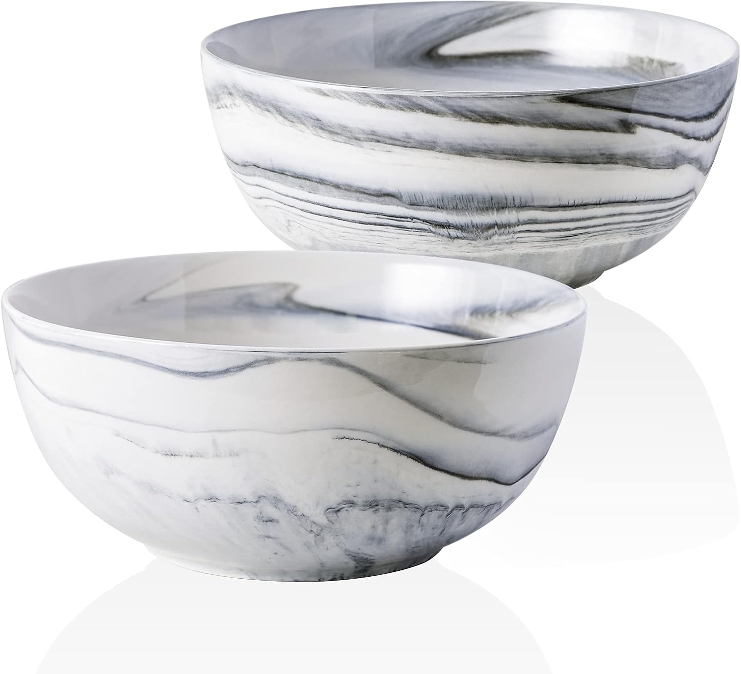 Yundu 9'' Deep and Large Mixing Bowls,84 oz Porcelain Serving Bowls for Pasta Fruit Soup Salad, Set of 2-Grey Marbled
